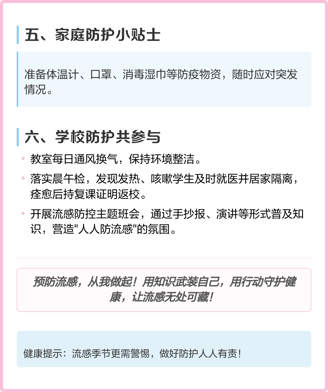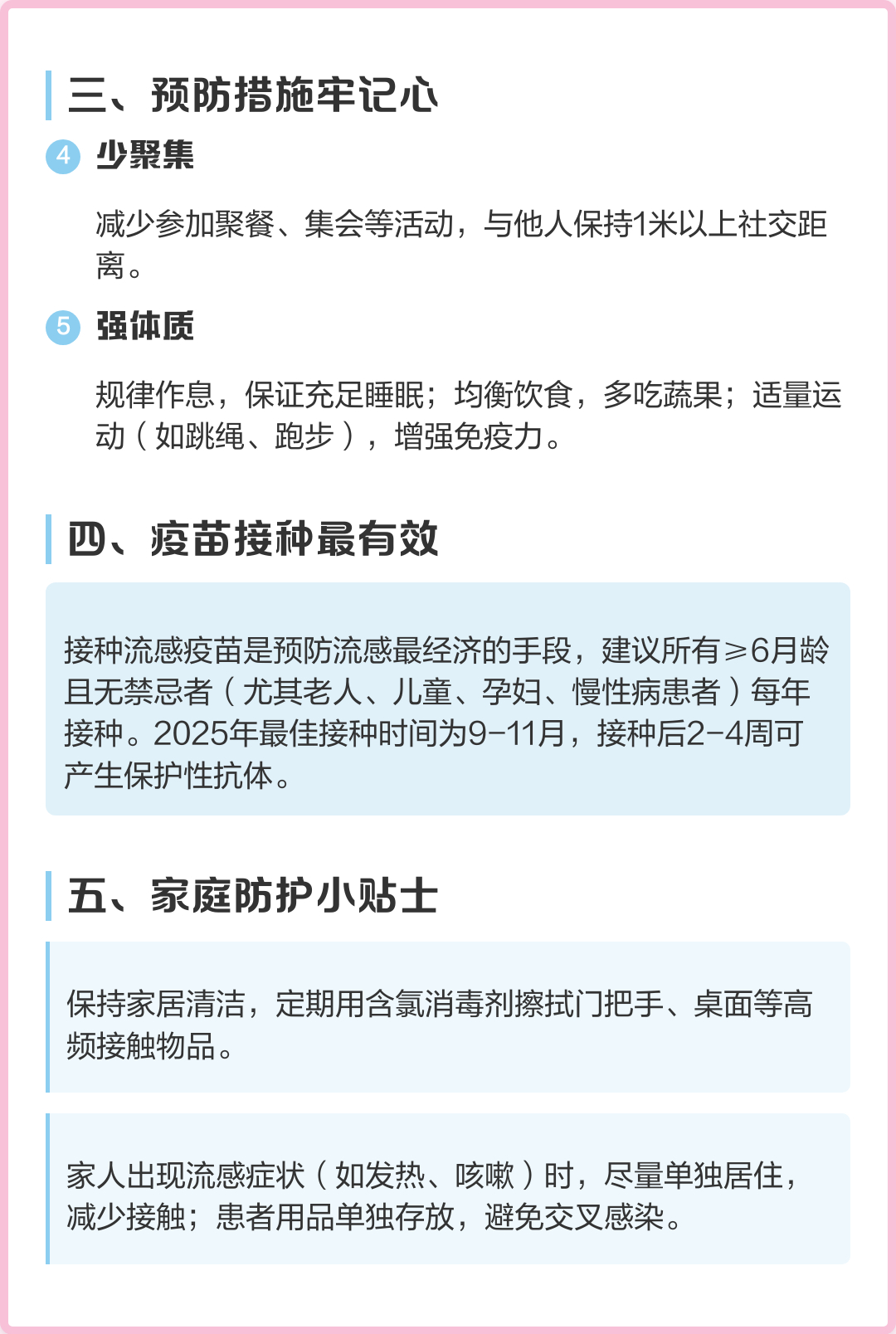 阿福提醒五大流感防护误区 流感是流感病毒引起的急性呼吸道传染病,常见症状为突发高热(39-40℃)、头痛、肌肉酸痛、乏力,部分伴有咳嗽、咽痛。与普通感冒相比,流感全身症状更重,传播速度更快。下图为流感预防与防护全指南,感兴趣的可以了解一下。