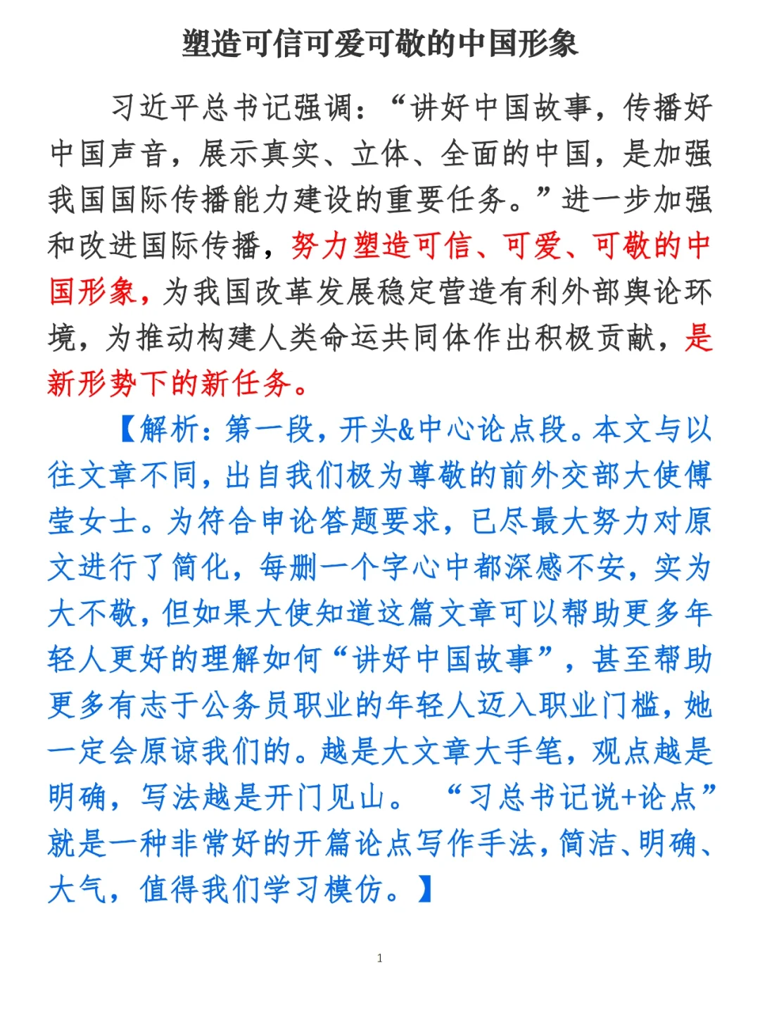 申论范文:塑造可信可爱可敬的中国形象