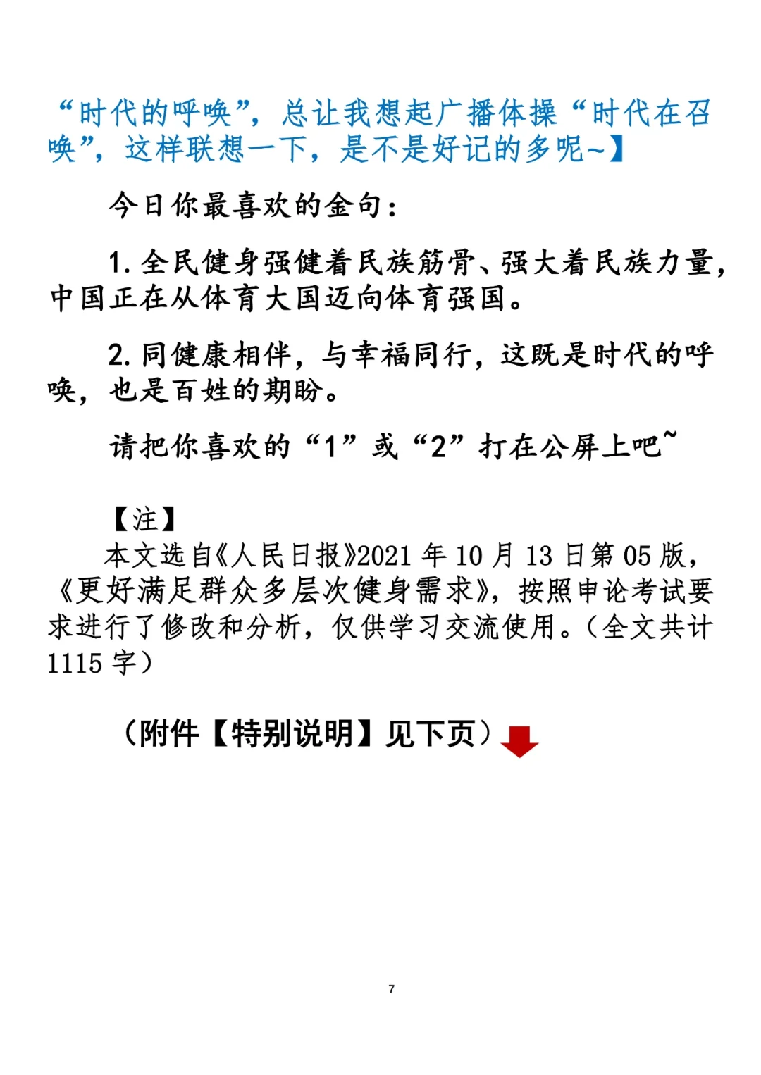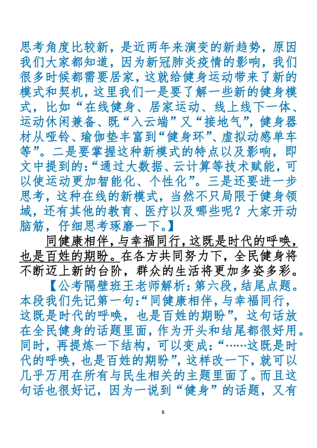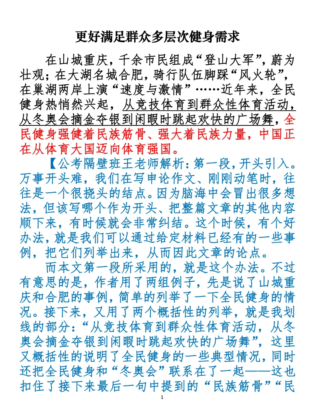 全民健身强健着民族筋骨、强大着民族力量,从竞技体育到群众性体育活动,从冬奥会摘金夺银到闲暇时跳起欢快的广场舞,都是中国从体育大国迈向体育强国的题中应有之义。 ⭐️ ⭐️ ⭐️ ⭐️ ⭐️ 这里是公考隔壁班王老师独创的“每天半小时 申论80分”抄写团,欢迎加入我们!