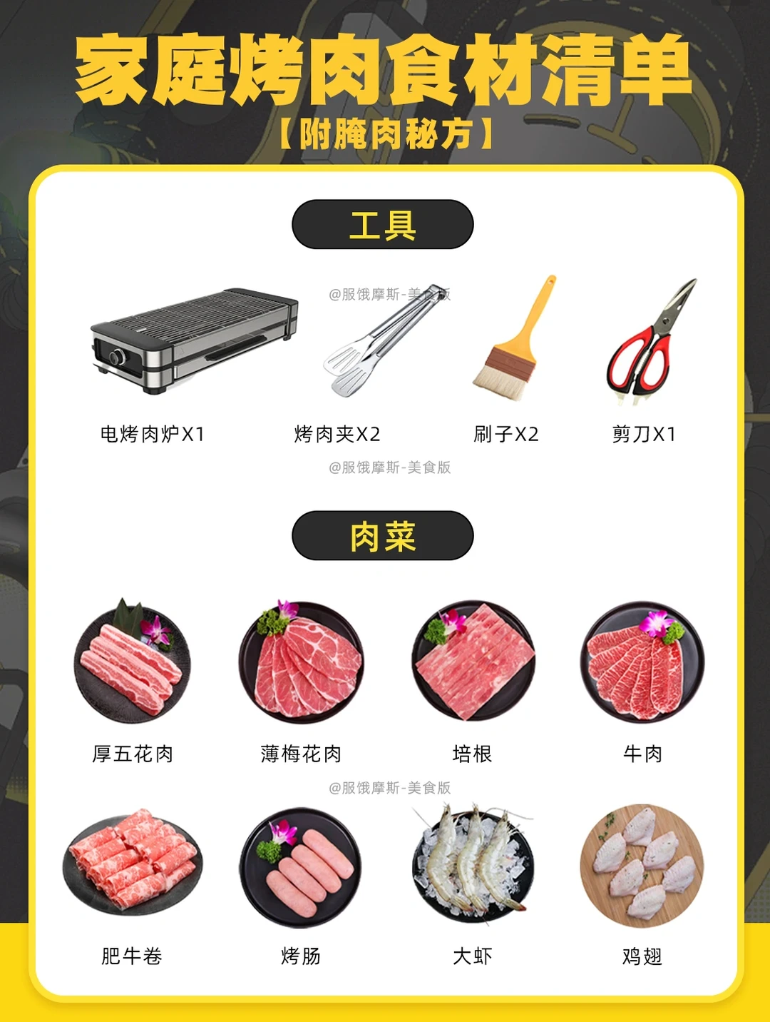 Hello,大家好!我是服饿摩斯~自从前面分享了家庭火锅食材必备清单之后,一直有粉丝朋友催我赶紧出家庭烤肉食材必备清单的文。