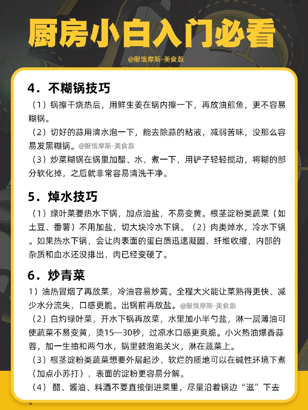 ⭐️(3)热锅热油:鱼、豆腐等需高温迅速定型的食材,需要热锅热油入锅后不要立刻翻动,会破坏成型。