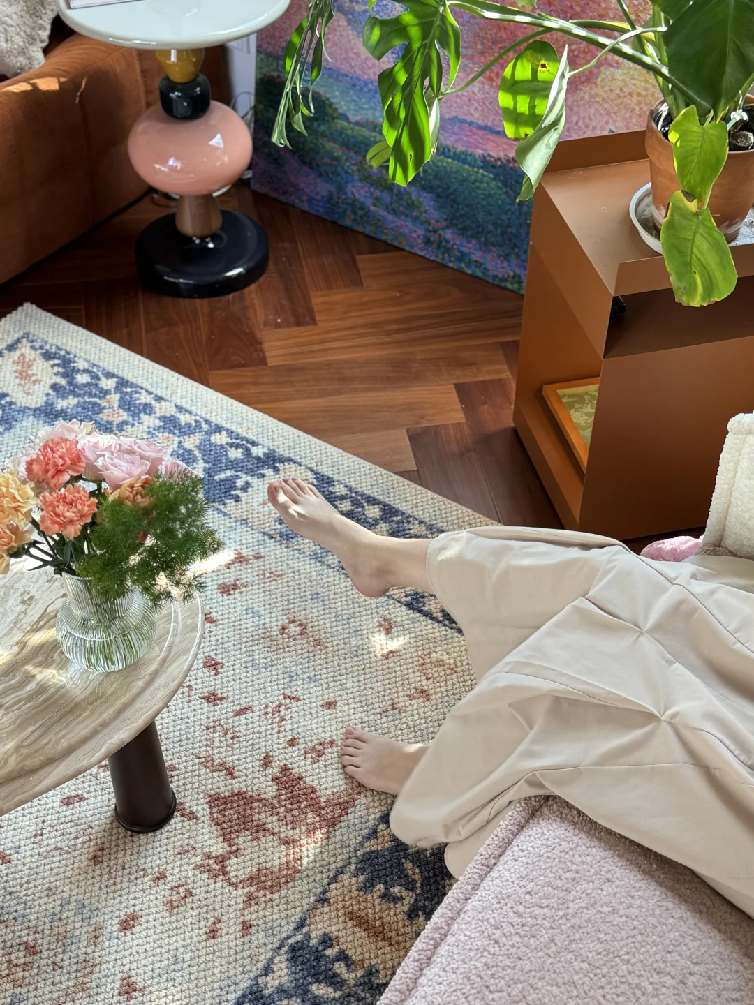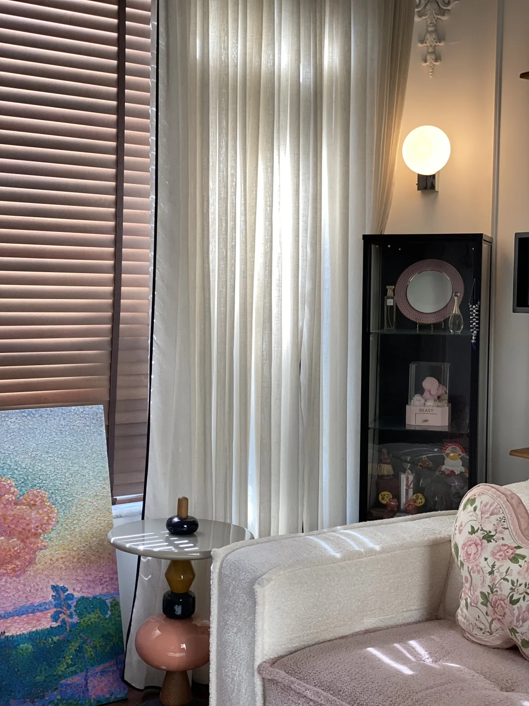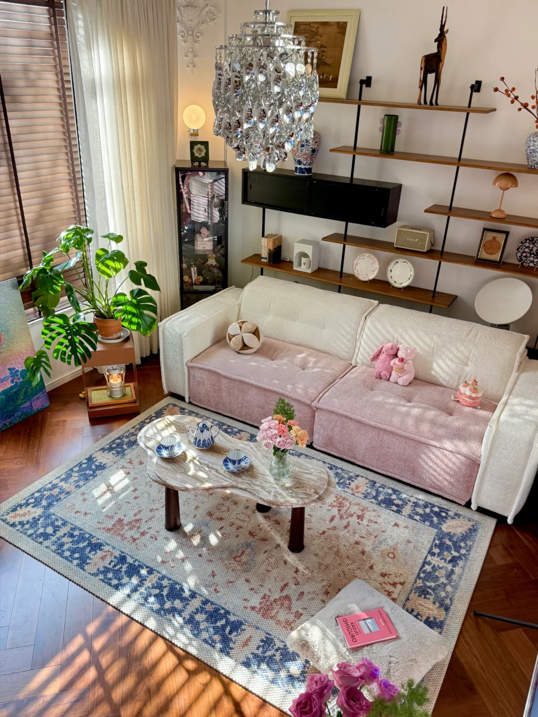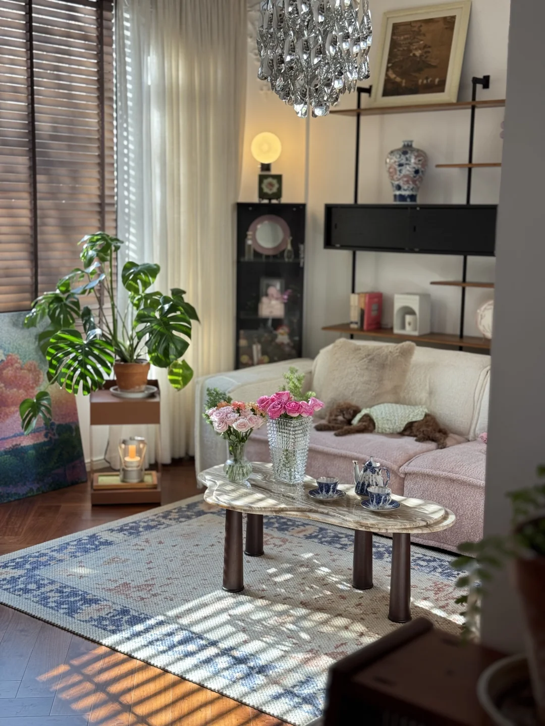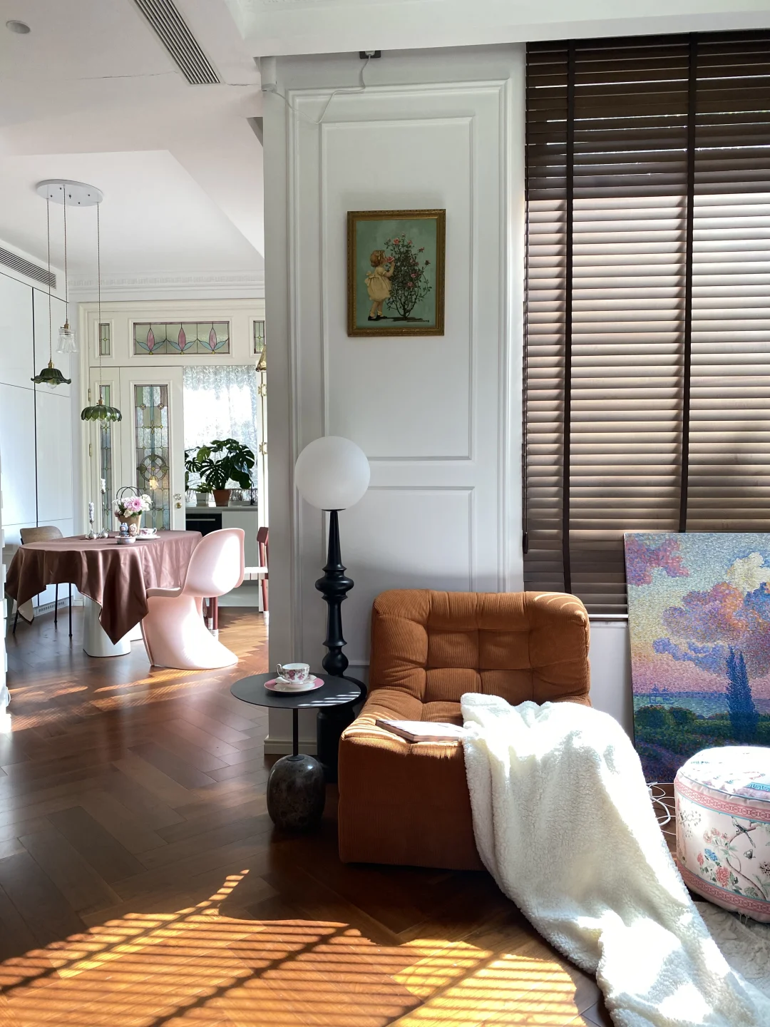 刚入住时,我家是标准的法式风格⬛️⬜️🟫: 石膏线勾勒着优雅的边框,墙是低饱和度的奶白,家具带着复古的深棕木纹,精致是精致,但总觉得少了点鲜活的劲儿~ 住得越久,越偏爱那些带着温度的装饰。大概是年纪长了,开始贪恋暖调的包裹感:换了粉色🩷毛绒绒的沙发,摆上釉色偏黄💛的陶土花瓶,连地毯都挑了💙青花瓷款。 风格哪有什么标准答案?让自己舒服,就是最好的布置。