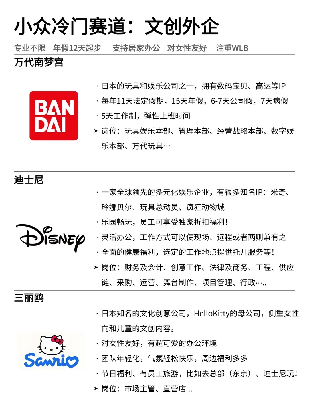 年底找工作不如真的试试这几家有趣的文创类外企,不管是喜欢画画、设计,还是对IP、品牌内容感兴趣的人,都可以在这里找到合适的方向。岗位涉及很多:设计、品牌、内容运营、策划、市场...方向 · 为什么还是值得去文创外企? ✔️氛围好,对女性友好,年假长,基本上都是10天起步 ✔️很多还都支持居家办公、福利完善,是真的能实现WLB ✔️对女性友好,氛围轻松包容 · 坚持日更✊🏻,帮大家在找工作路上顺利拿 offer!·