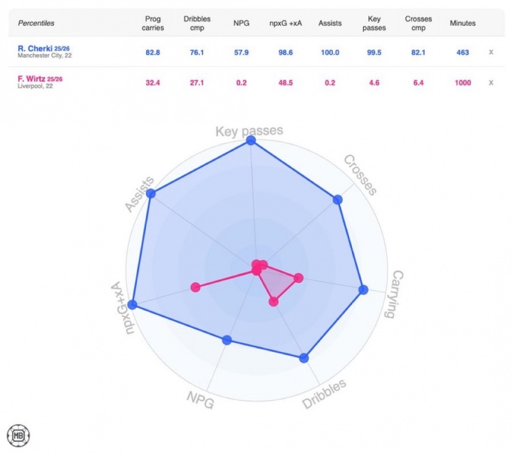 本赛季谢尔基和维尔茨的数据对比