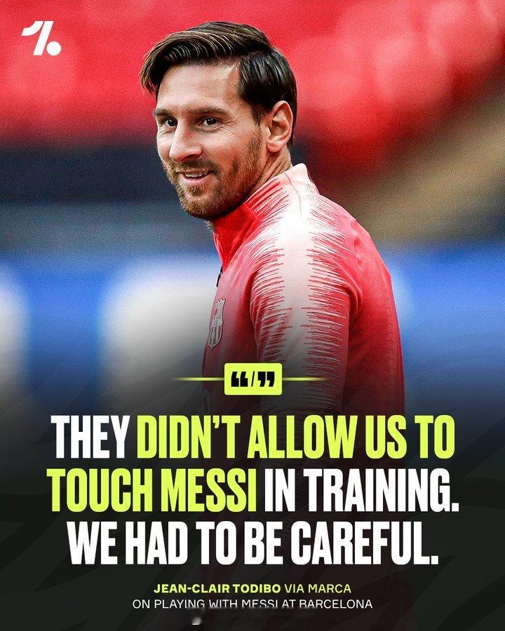 【训练不能碰到梅西】目前效力西汉姆联的前巴萨后卫托迪博,在接受《马卡报》采访时透露:“在巴塞罗那,他们(高层)不允许我们在训练中碰到梅西。这听起来很疯狂,但这是真的,对此我们必须小心谨慎。”“但是,这也很正常,他是最棒的,你不想弄伤他。”