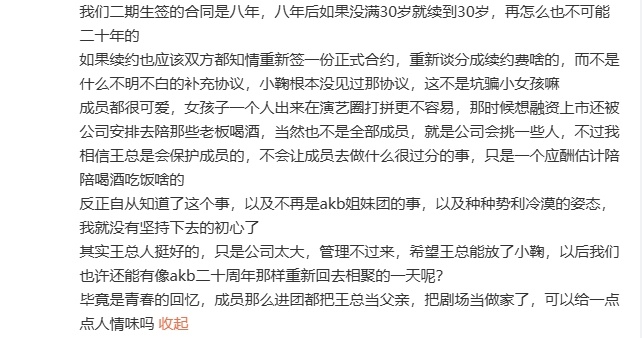 鞠婧祎前队友爆丝芭内幕艺人揭丝芭为上市让成员陪酒 据曾艳芬爆料,丝芭传媒在上市期
