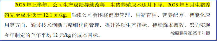 一体化模式下,2024年底牧原股份生猪养殖完全成本降至13元/kg。2025年6月,该指标降至12.1元/kg。
