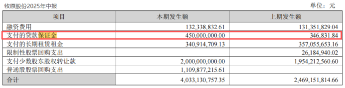 同期,公司用于支付的贷款保证金已经增长至4.5亿元。