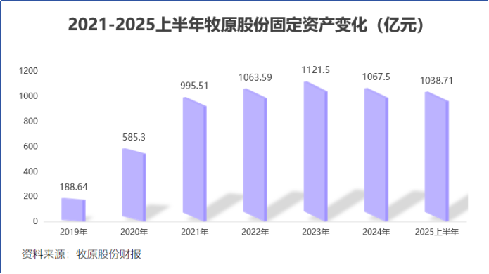 公司固定资产从2019年的188.64亿增长至2024年的1067.51亿元。截至2024年末,牧原股份已有养殖产能约8100万头/年,能够担当起“中国猪王”的称号。