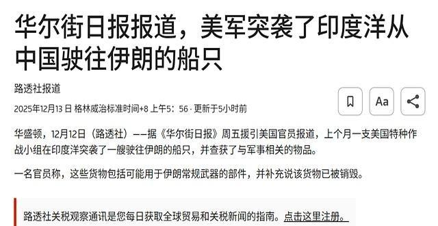 以牙还牙已经过时,现在是“以舰换舰”!既然美国敢在公海玩海盗那一套,那台湾海峡就不再是美军后勤的“免检通道”。别跟我谈误判,美国销毁物资的那一刻,就自动签署了中国海军“对等拦截”的授权书。从今天起,任何运往敏感区域的美国船只,都将面临“中国式执法”的饱和围堵! 美国上个月在印度洋搞的那事儿,闹得挺大。美军特种部队登上一艘从中国港口开往伊朗的货轮,直接扣了部分货物,还当场销毁了。华尔街日报援引美方官员的话说,这批东西是军民两用部件,可能帮伊朗恢复常规武器能力。行动发生在斯里兰卡外海几百公里公海,船被放行继续走,但货物没了。这几年头一回,美军对这种中国来源的运输下手这么直接。 说实话,这操作听着就别扭。公海航行自由是国际法基本规矩,联合国海洋法公约里写得清楚,军舰登临商船得有严格条件,海盗、奴隶贸易那种极端情况才行。美方靠单边情报就动手,没安理会授权,没船旗国同意,直接销毁,这不就是长臂管辖的海上版吗?他们自己还没批准那公约,却老拿它当挡箭牌。伊朗那边否认货物有问题,中国外交渠道也要求说明和赔偿,但美方就那句阻止扩散,情报保密,不多说。 这事儿放三十年前,银河号那时候中国船被扣好几周,最后查出来啥都没有,美国一句情报错就完事。现在不一样,中国海军远洋能力强了,印度洋常有编队护航,北斗定位准得很。美军敢这么干,说明他们着急,伊朗导弹链子断了,想从供应链堵。中国和伊朗正常贸易,合法合规,美方非要插手,实际是挤压中国在中东布局。 老话说以牙还牙,现在看那套过时了。美军打开这个口子,中国海军完全可以用同样逻辑回击。南海、台湾海峡那边,美方补给船、军援运输老来老去,以前当安全通道用。要是哪天中国舰队靠近,发出停船信号,登检可疑货物,引用美方先例处理,那画面想想就平衡。不是挑事儿,是对等维护权益。美军依赖全球海运补给链长,中国造船产能世界第一,舰队规模摆那儿,谁耗得起谁心里有数。 说到底,公海不是谁家后院,规则被单方面撕破口,就有人补上新规矩。中国这些年海军走出去,护航亚丁湾,打击海盗,大家有目共睹。以后任何想重复这套的国家,都得掂量代价。海上多极化是大势,靠霸权横行日子不好过了,供应链安全得大家一起守。