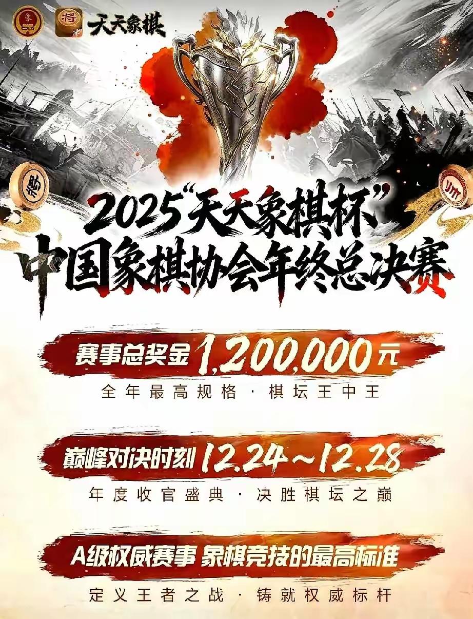 全国象棋个人赛冠军王禹博,因为现在的新政策,还是不能被授予特级大师。虽然不授予特级大师,但是在人们心中,这个冠军仍然是含金量最重的一个冠军。 王禹博将迎来一个现实奖金很大的大赛,​12月24日开战的“天天象棋杯”年终总决赛,总奖金砸到了120万,男子头名独享25万。 ​孟辰、曹岩磊、孟繁睿、尹昇等参赛棋手,都是全国象棋个人赛中的参赛棋手,将和王禹博再次对局,​天天象棋杯这一战,也是对王禹博的一个检验,全国象棋个人赛冠军是不是新王朝的建立者。象棋总决赛 象棋特大 象棋特级大师 象棋奖状