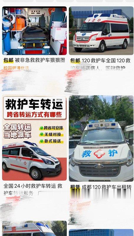 互联网平台上,非急救医疗转运车辆真假难辨。网络截图