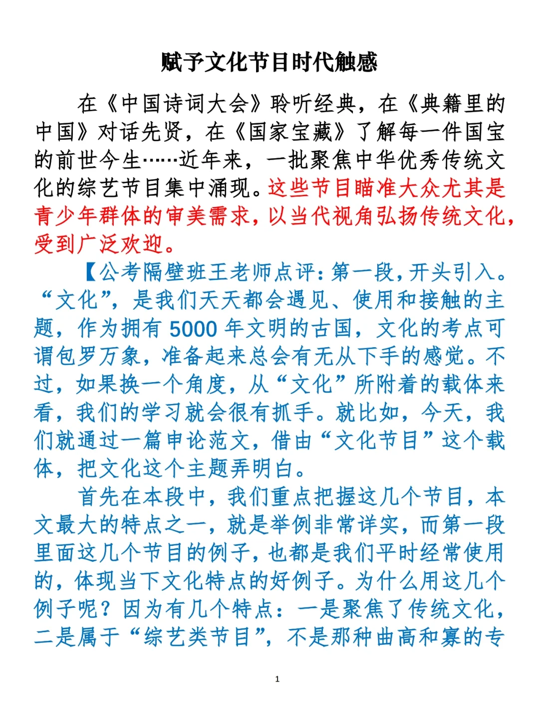 如果你和我一样,是一个从来不看电视节目的人,或者为了备考目前没时间看电视节目的人,也应该至少知道《中国诗词大会》《典籍里的中国》《国家宝藏》。今天就让我们用一篇文章,不仅了解这些好节目,更透过现象看看背后的文化内涵。 ⭐️ ⭐️ ⭐️ ⭐️ ⭐️ 这里是公考隔壁班王老师独创的“每天半小时 申论80分”抄写团,欢迎加入我们!