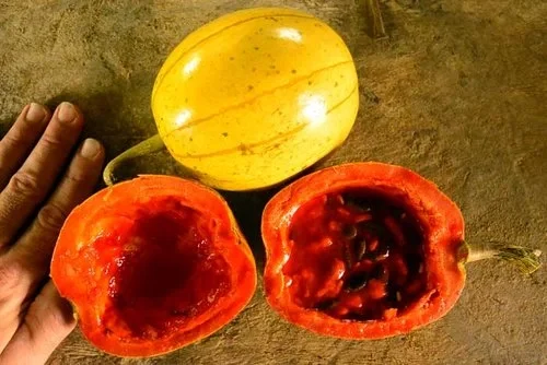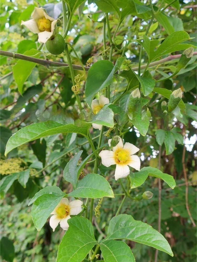 这种葫芦科南瓜属攀缘藤蔓植物从墨西哥分布到中美洲,生长在森林、河岸和路边。它爬到大约20米的高度,叶子深深裂开,呈乳黄色花s和黄色,可食用,美味的水果,大约葡萄柚大小,味道类似于甜的乳木瓜。 尽管Cionosicys macranthus在西班牙语中很常见,翻译过来就是中国的百香果,但它不是来自中国,一点也不像百香果。对于热带潮湿气候,它也是一种很好的装饰物。