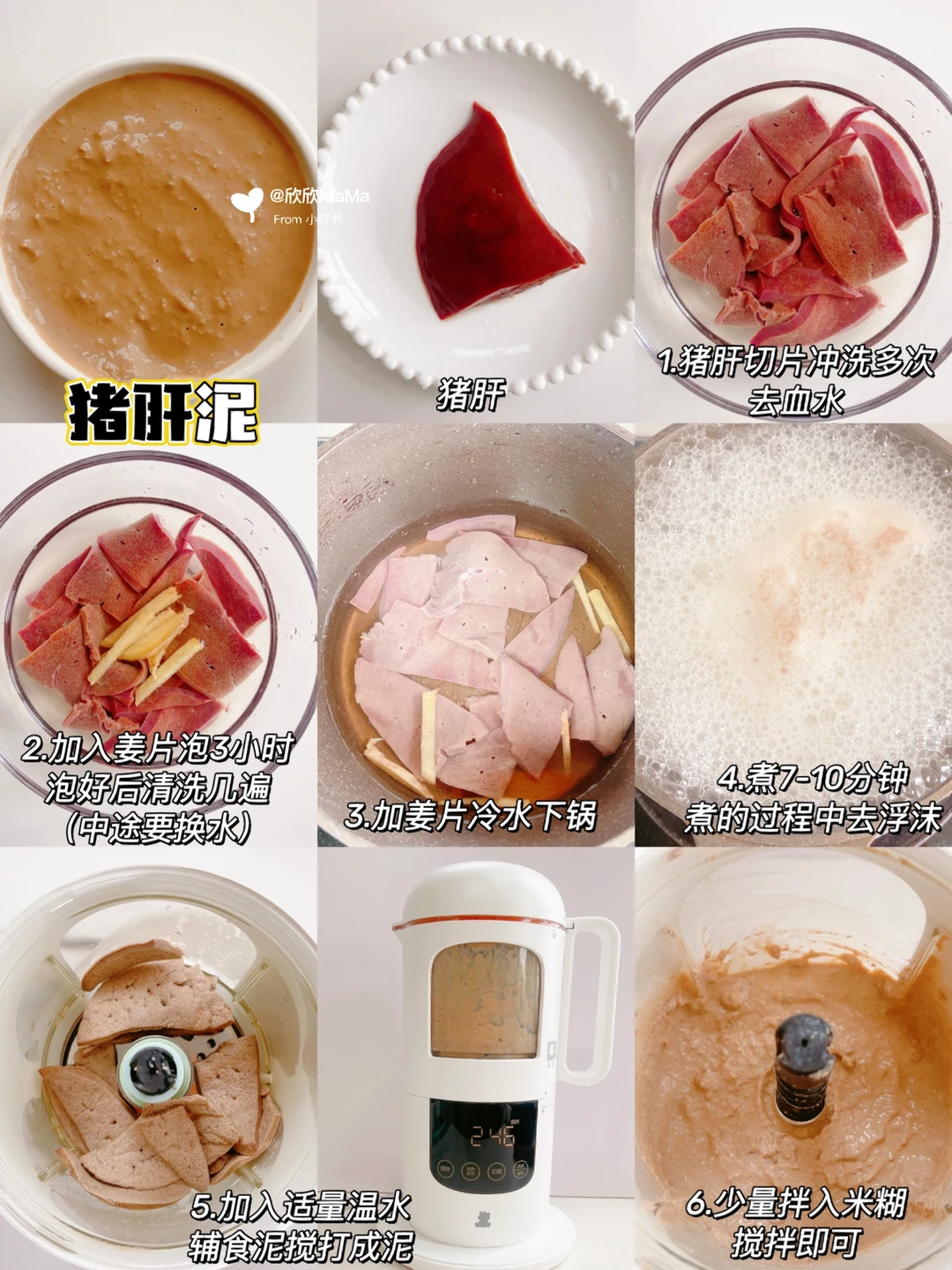 7月龄宝宝就可以开始添加肉泥了,肉泥不仅起到了补钙、补铁的作用,而且满足了小宝贝成长道路上所需要的营养~今天分享9款宝宝肉泥制作、储存方法和解冻~ - 我用的辅食机是蒸煮搅一体的,实在太方便了! 这位做辅食的福音,平时懒的话可以准备好食材放入辅食机按操作模式就可以,宝宝大了还可以做米糊,并且一键消毒,省时省力! . ⚠️宝宝第一口肉泥建议先吃白肉再吃红肉,从鸡肉泥、其次猪肉泥、鱼泥、牛肉泥等慢慢过渡 🔸肉泥制作方法: 具体看2-6,基本都大同小异,具体步骤 1️⃣:去筋膜去油脂,切小块(除了鱼、虾) 2️⃣:去腥(加柠檬片或生姜浸泡15分钟左右) 除了猪肝需要泡2-3小时,期间要换水 3️⃣:食材蒸煮 冷水上锅蒸煮 鸡肉、猪肉锅中蒸20分钟 牛肉上锅蒸35分钟 鱼上锅蒸8分钟、猪肝和虾水中煮7-10分钟 4️⃣:打泥 加入食材适量的温水开始搅打细腻 打泥的时候可以少量多次加水、根据宝宝接受度决定肉泥稠度 🔸菜泥搭配: 可以搭配红薯、土豆、胡萝卜、香菇、菠菜等食材味道会更好哦! 🔸肉泥储存方法和解冻 做多的肉泥可以直接装入辅食格冷冻,4小时后取出放入密封袋,下次吃的时候取一块、直接上锅加热8-10分钟即可, 🔸肉泥储存时间: 肉泥冰箱冷冻可以保存一个星期! 宝宝辅食日记|7个月辅食日记|8个月辅食日记