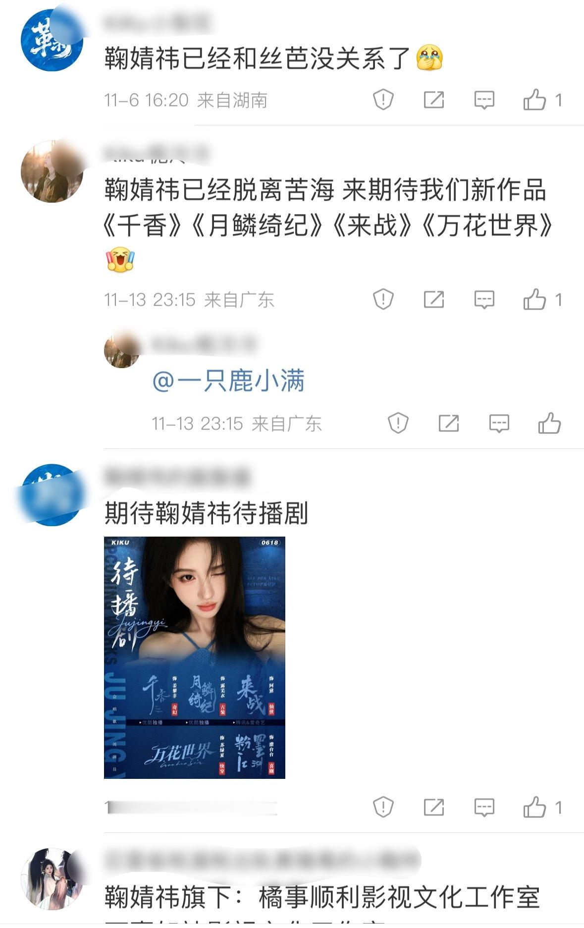 现在想想鞠婧祎以及她粉丝真的好惨,以为已经脱离苦海了,没想到恶魔从未放过她!我之前发过一个人养活一家经纪公司的帖子,其中有鞠婧祎,她粉丝真的是带着骄傲幸福来空瓶的,本来解约后一切都往好的方向发展了,大家也齐心协力忙着星光大赏投票,没想到一记重锤就这么狠狠的砸过来了!虽然丝芭以网友仇富心理放了猛料,但大多数人还是支持小橘的,因为她业务能力强,从不抱怨!熬不住的时候想到粉丝陪伴就会很坚强,还有她活粉多粘性强,是这些年拿粉丝当家人,一直分享生活日常维护起来的(指望前公司运营粉丝早跑光了)