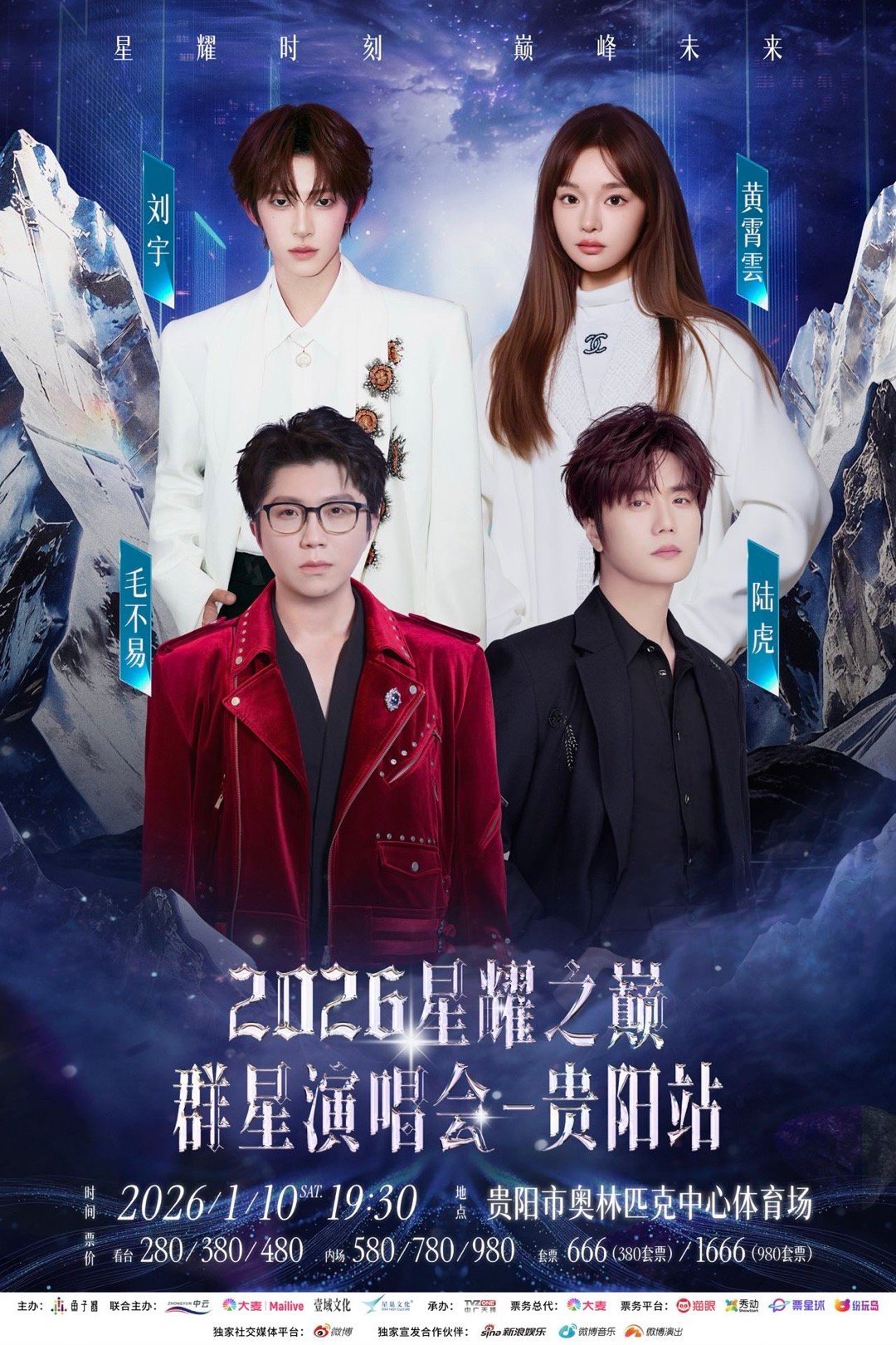 2026星耀之巅群星演唱会贵阳站毛不易刘宇陆虎黄霄雲来贵州了 2026星耀之巅群星演唱会·贵阳站盛大定档1月10日!毛不易刘宇陆虎黄霄雲奔赴贵州,这场极致惊艳的视听狂欢,属实让人翘首以盼~即将开票这把我务必全款拿下!