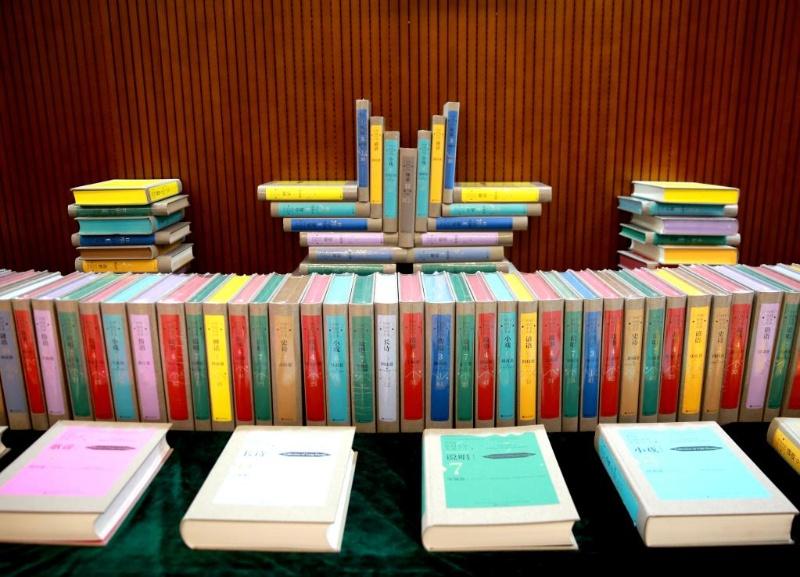 图为推进会上展示的《中国民间文学大系》图书。(中国民协供图)