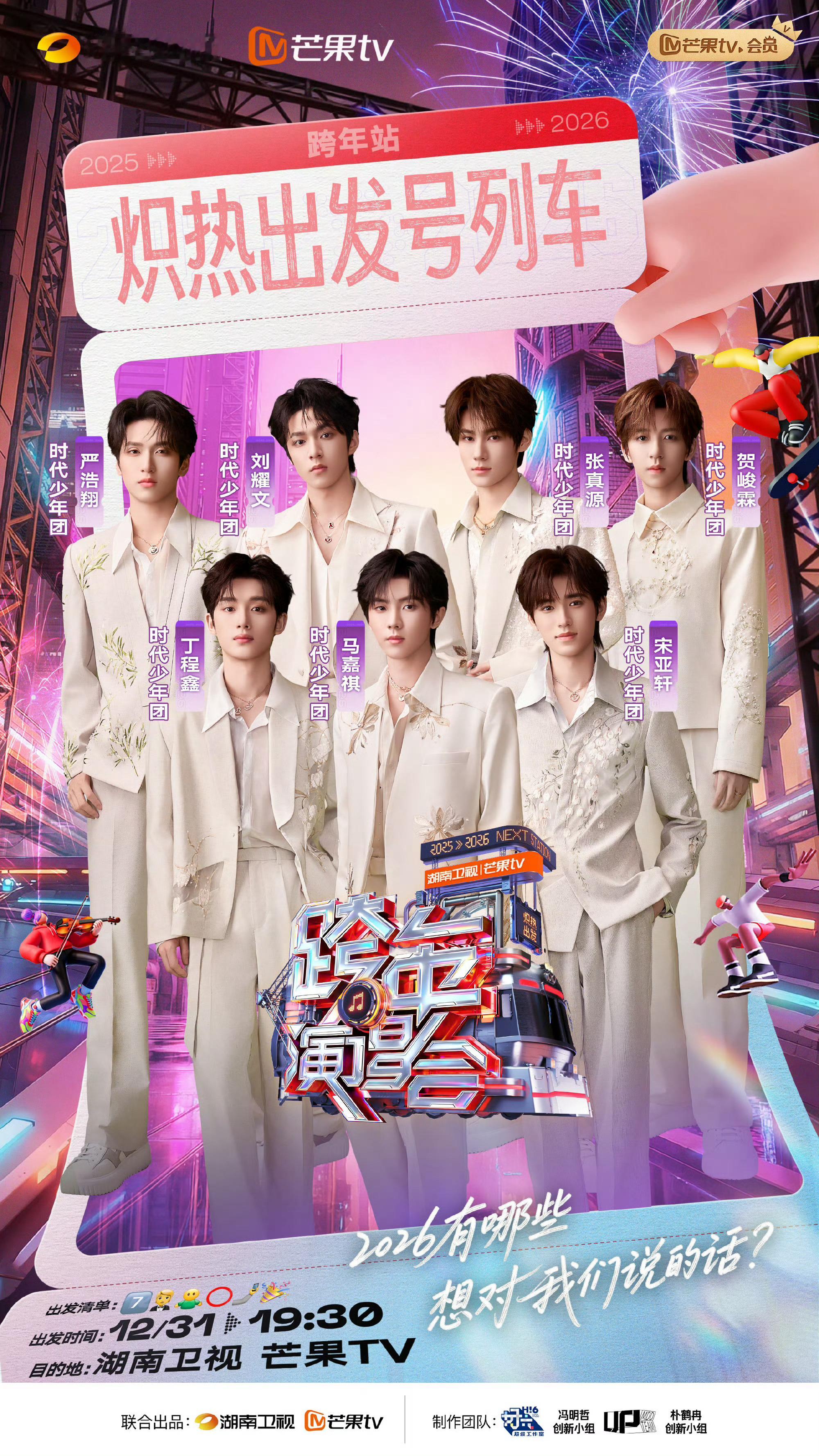 湖南卫视跨年第二波阵容 好喜欢芒果跨年的第二波阵容!实力唱将那英、陶喆压阵,保证了舞台的质感与情怀;新生代偶像时代少年团、檀健次扛起流量大旗,唱跳舞台看点十足;综艺届的搞笑担当李雪琴的加盟,还有宋威龙、沈月、孟子义、谭松韵的颜值暴击多元风格碰撞,这场跨年演唱会想不好看都难,已经狠狠期待住了!湖南卫视跨年演唱会微博跨年狂欢节