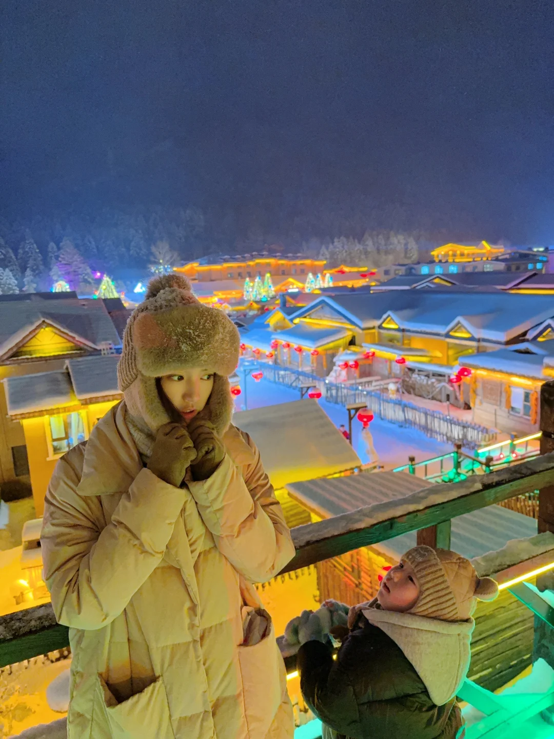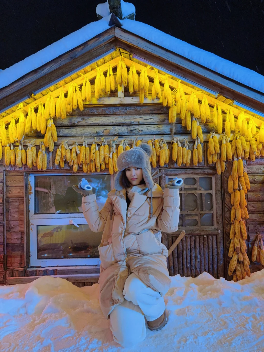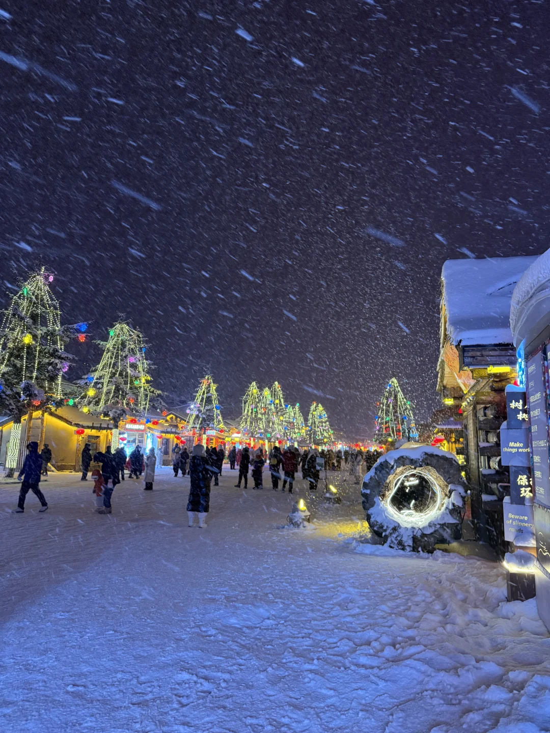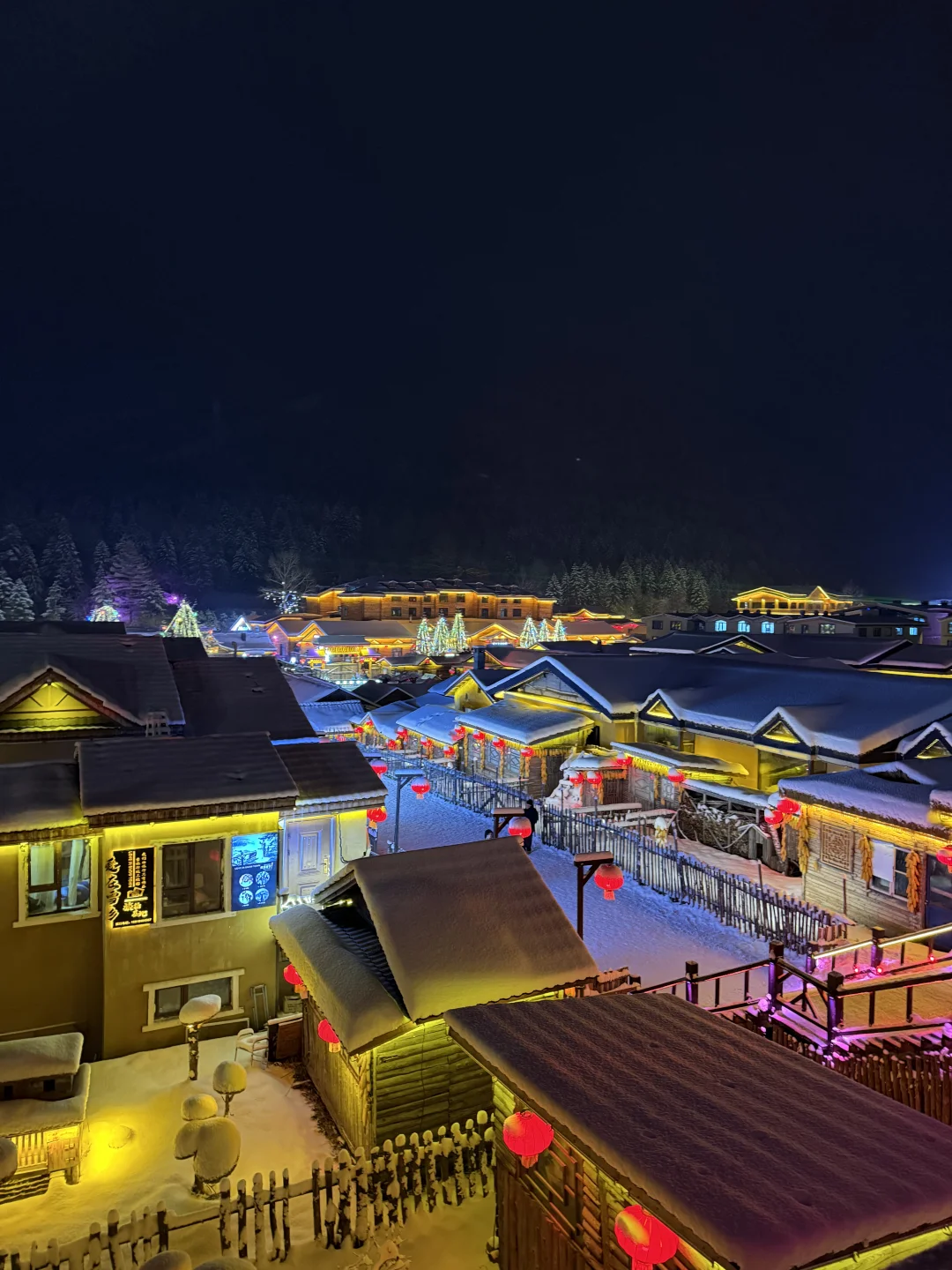 4️⃣如果你时间有限,尽量把时间给到晚上,天黑以后的雪乡才是坠美的,坠出片的,和白天完全不一样的感觉。