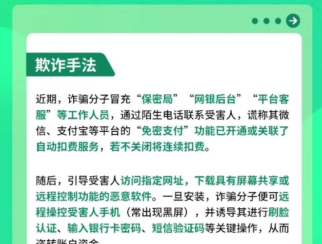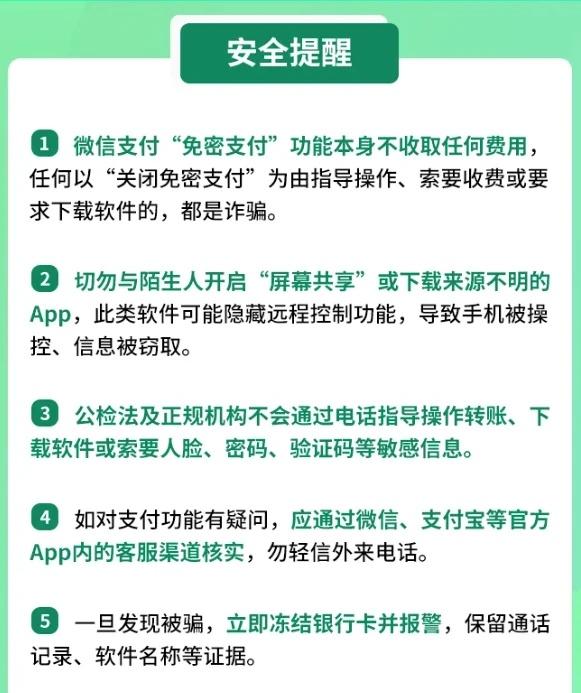 速看!微信紧急辟谣“免密支付功能收费”! 大家要小心了,最近有人冒充客服、网银后台等角色,并借此谎称用户微信的免密支付功能,已经开通了、关联了自动扣费服务。如果用户不听从他们的指令去访问特定网址、下载有远程控制功能的恶意软件,手机就会持续扣费。 微信 腾讯 反诈