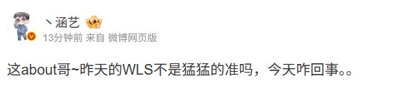 原形毕露?涵艺:这about哥昨天的WLS不是猛猛的准吗 今天咋回事