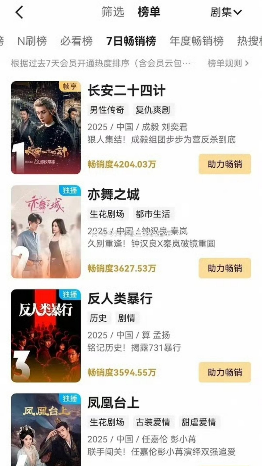 报📣📣成毅《长安二十四计》仅用5天17个小时就进了👖拉新年榜,是今年进榜速