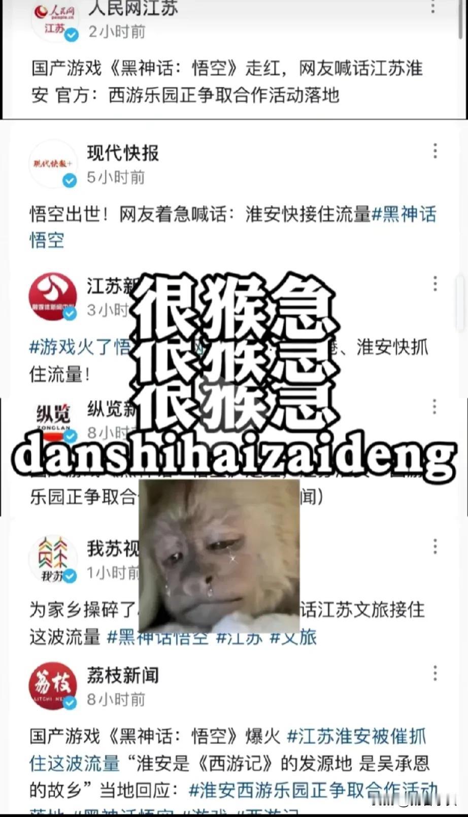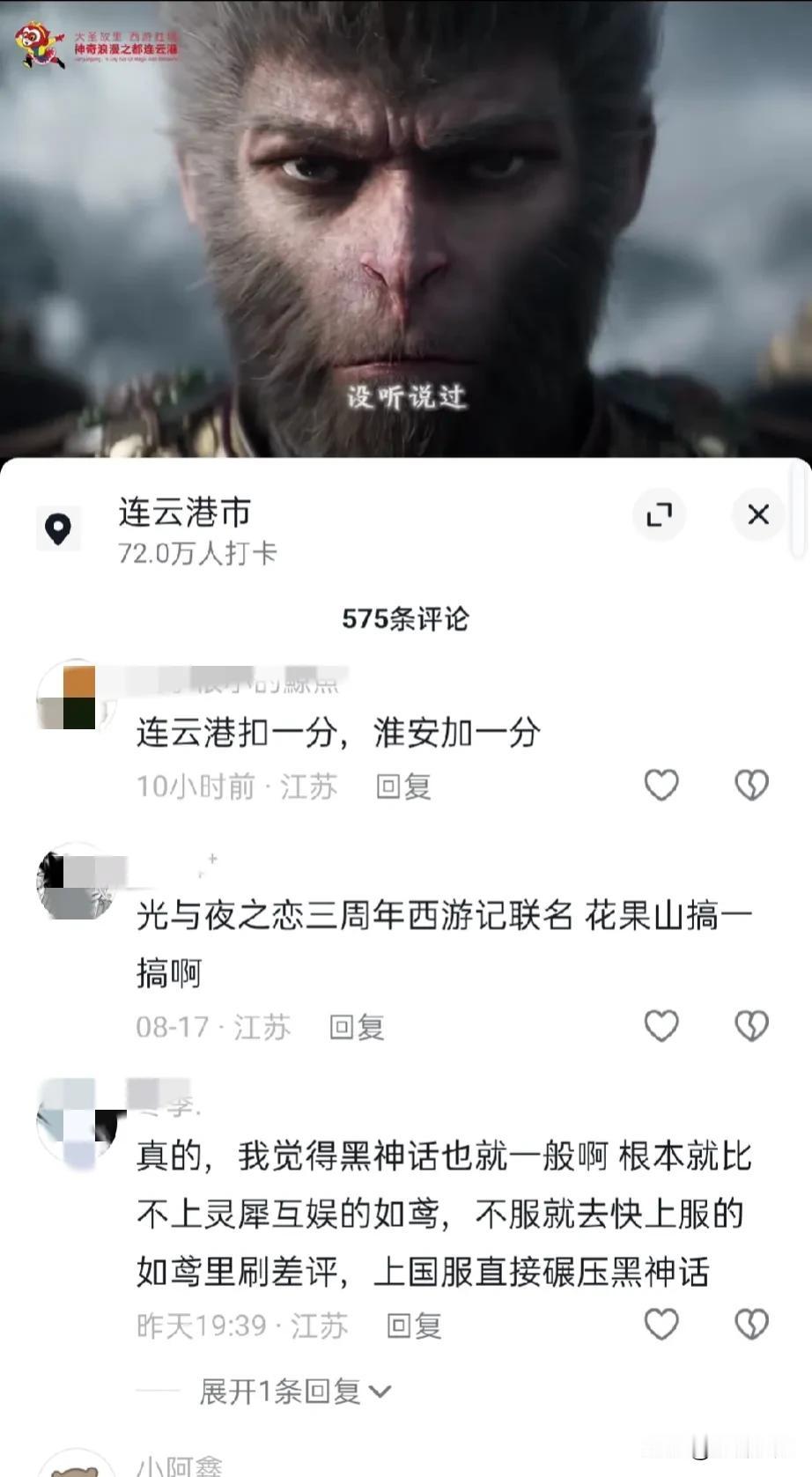 《黑神话 悟空》这波流量淮安和山西接住了。 这两天热门话题就是《黑神话 悟空》了,各地旅游城市蠢蠢欲动尤其是西游记老家淮安可是积极梦幻联动争取合作,西游乐园将迎来大批游客关注。 山西因大量文物也受到关注立马发布黑神话悟空的旅游路线,山西赢麻了。 这可急坏连云港网友了,守着花果山那么大聚宝盆不积极干嘛呢? 这波流量肯定接不住了,说不定还要被省内兄弟笑话。