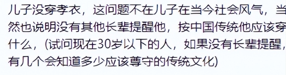 何晴离世,独子许何没有表露悲伤状态居然都还遭网暴! 无聊的人真不少。各地风俗不一样,黑色服装就是葬礼的颜色。北京冬季天气寒冷,穿羽绒服很正常。 只要我活着的时候,孩子对我尽了孝心,办后事的时候,他哪怕穿个红色羽绒服,我都不会怪他!父母活着不尽孝,死了你穿1000件孝服有啥用啊? 人在这样悲痛的时刻是流不出眼泪的,只是机械的按照人家要求执行!请那些人口下笔下手下留情留德!