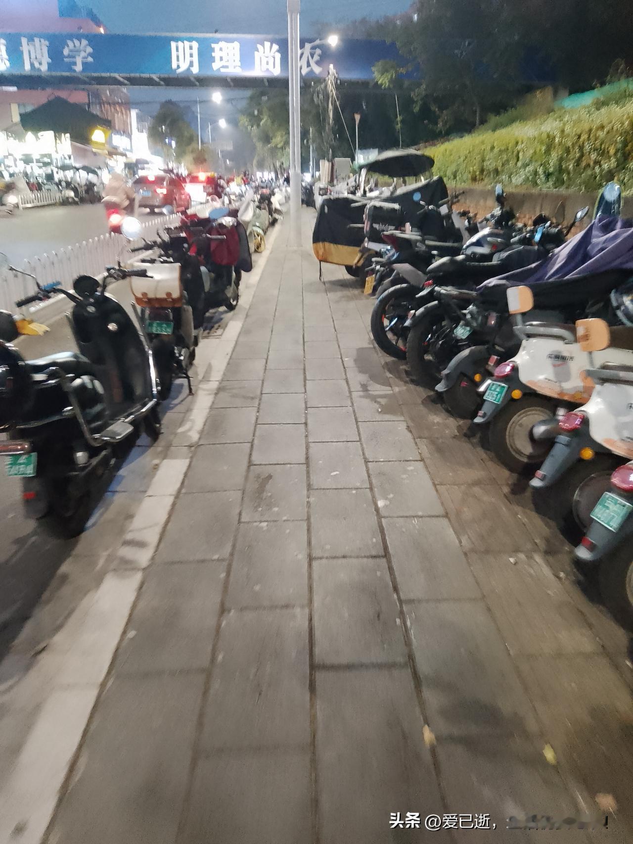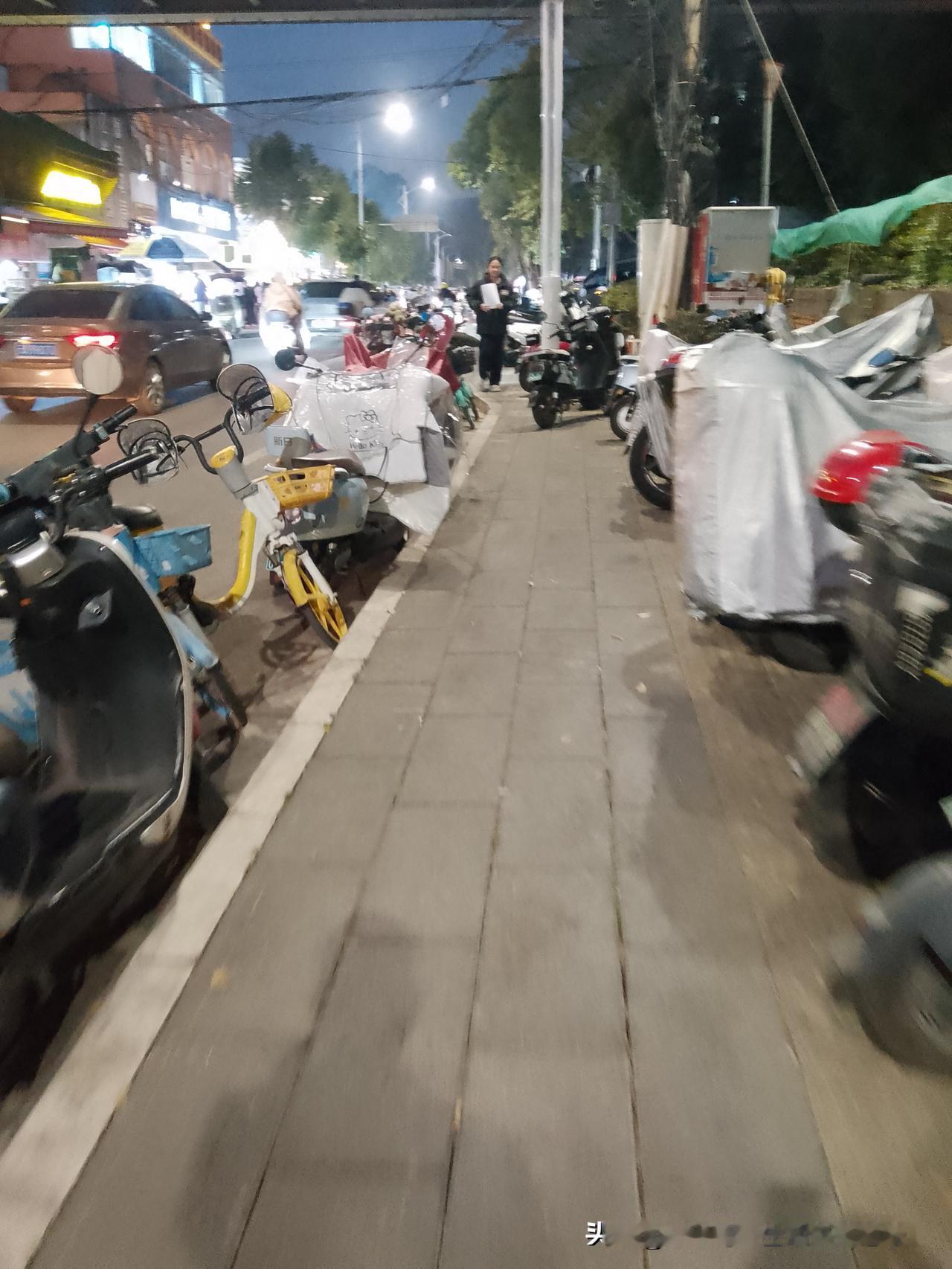帶大家走走形同虚设的人行道和盲人道。云南昆明盘龙区农业大学老校区门口这条双向两车道路段。人行道和盲道上摆满密密麻麻的电动自行车,有私人的但更多的是共享电动车。别说盲人走的盲道,正常人都很难正常行走了。难道学校附近的道路都是这样的吗?