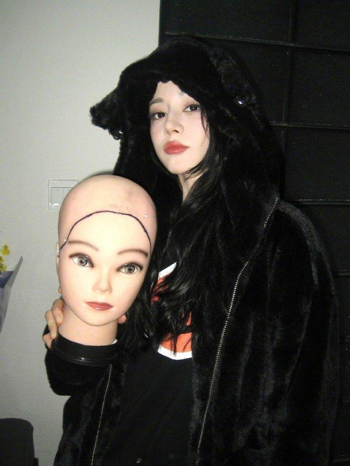 迪丽热巴说冬天就是要暖fufu迪丽热巴黑色毛绒外套 迪丽热巴营业啦~不是我说真的