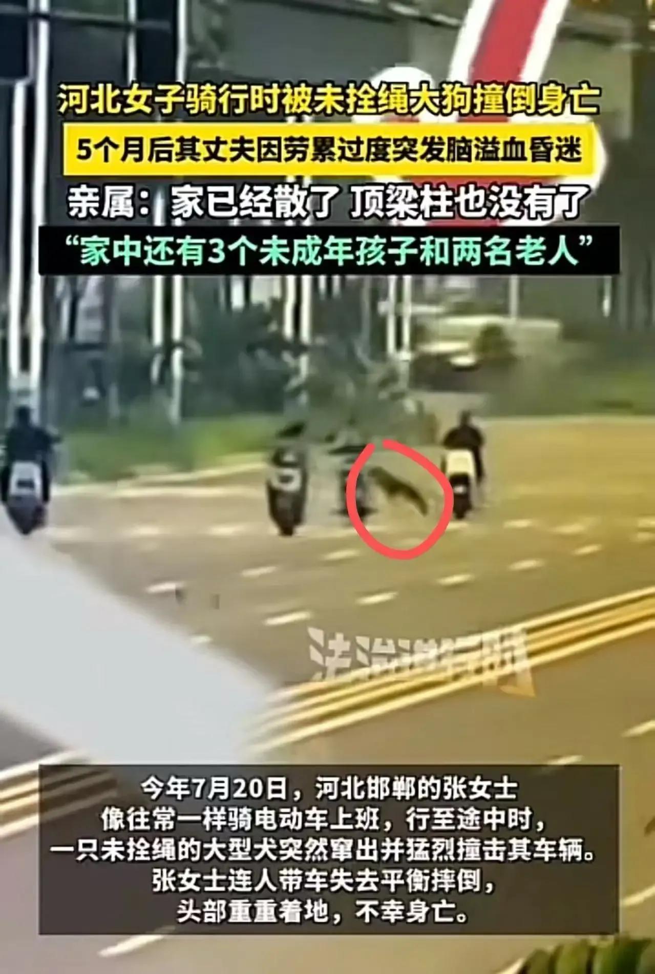 河北一女子骑行时竟被未栓绳的大狗撞倒身亡,这起悲剧让人痛心不已!更令人揪心的是,