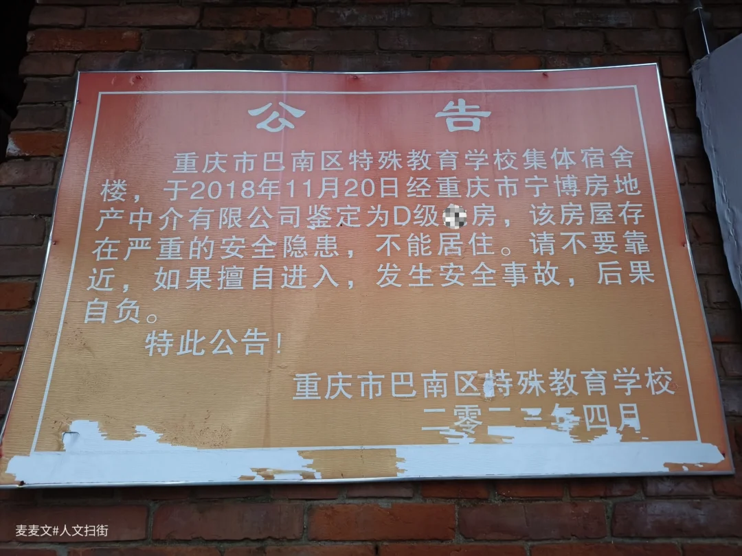 这栋房子原为重庆水轮机厂家属楼,后来又作为重庆市巴南区特殊教育学校集体宿舍楼使用,它见证了无数家庭的悲欢离合,也承载了特殊孩子们的青春记忆。楼前的石阶歪歪斜斜,台阶边缘被磨得光滑,似乎在默默记录着曾经人来人往的热闹场景。