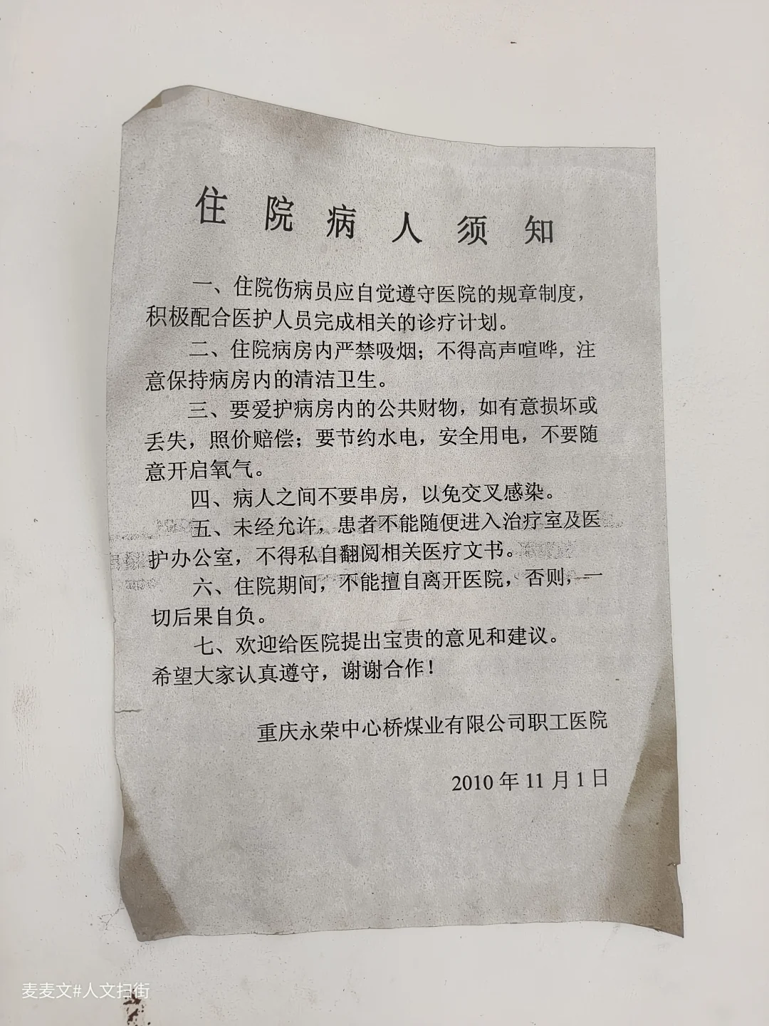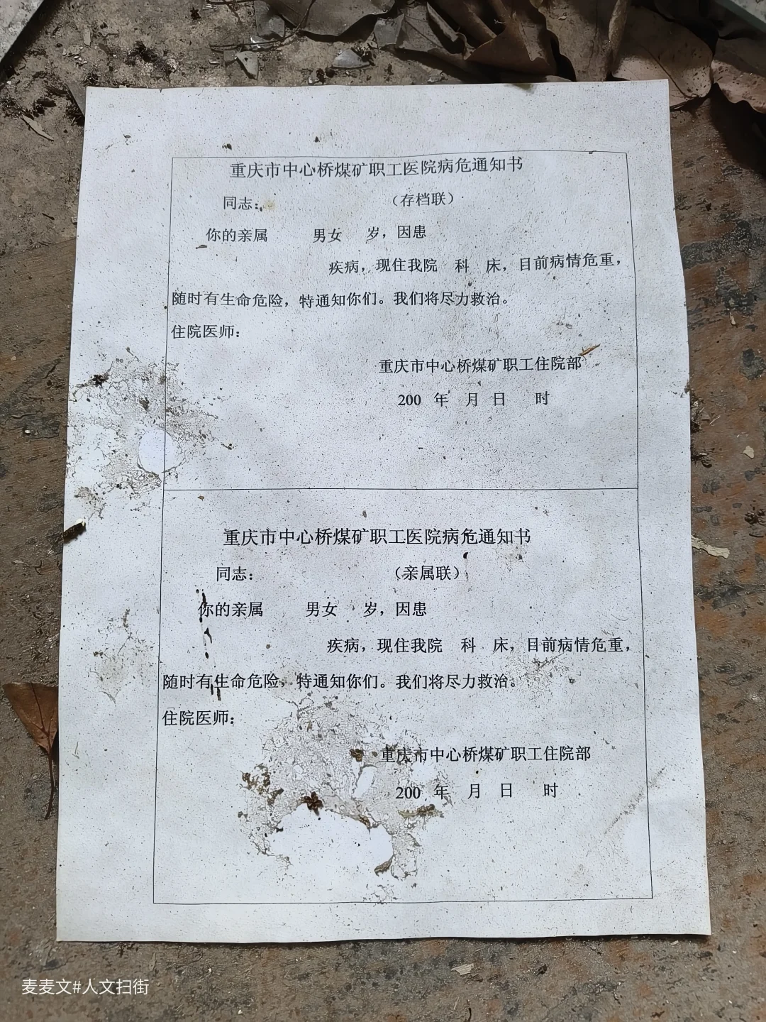 曾经,重庆市永川区双石镇中心桥煤矿职工医院是守护矿工健康的地方。有焦急的问诊,也有康复的喜悦。永荣矿务局中心桥煤矿关停后,它渐渐被遗忘。如今,颇败的门框、杂乱的诊室,诉说着往昔的热闹与如今的寂寥。它是时代变迁的无声见证者,承载着煤矿职工们难忘的记忆,静静伫立在岁月里。