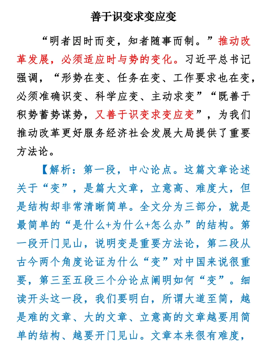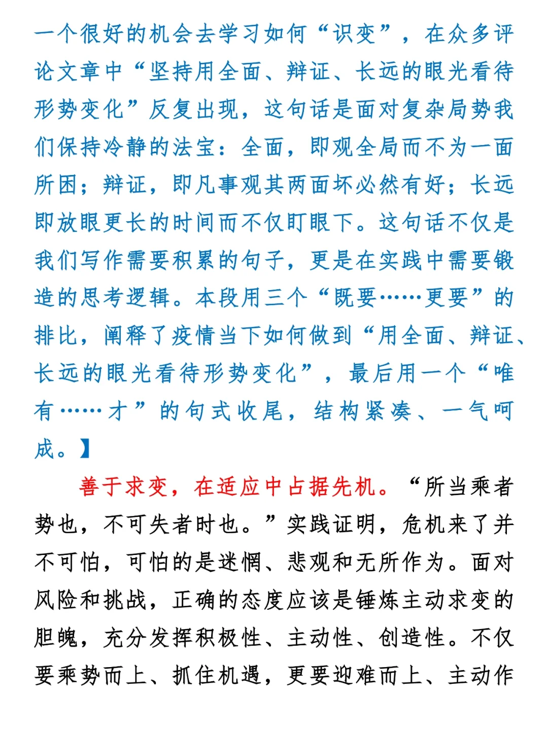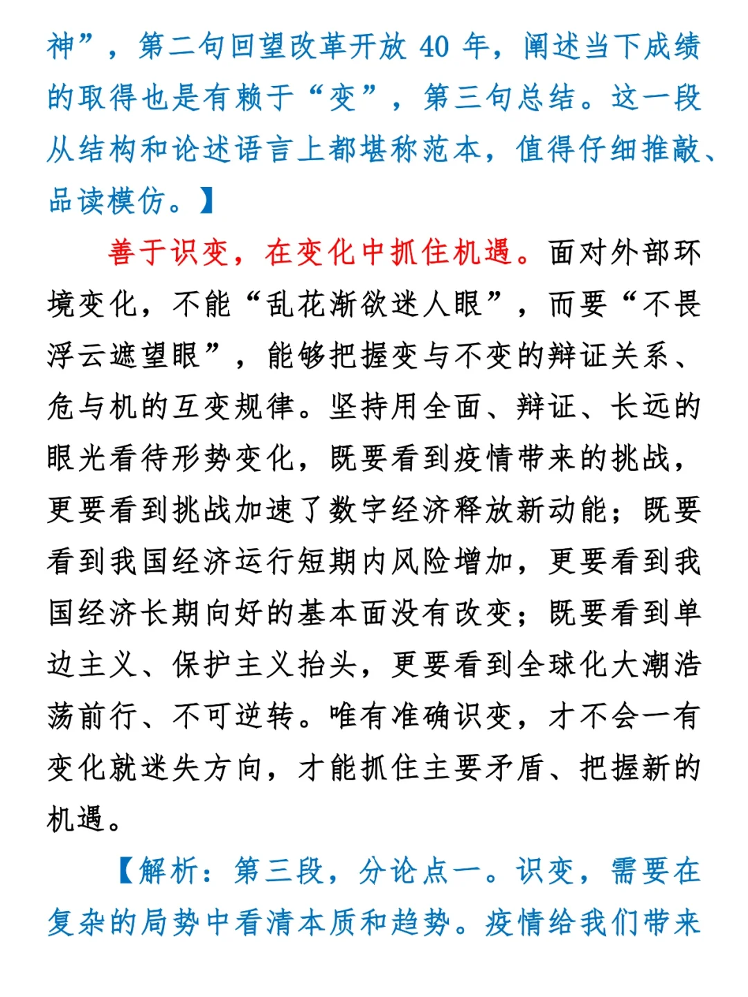 高分申论范文+解析:善于识变求变应变