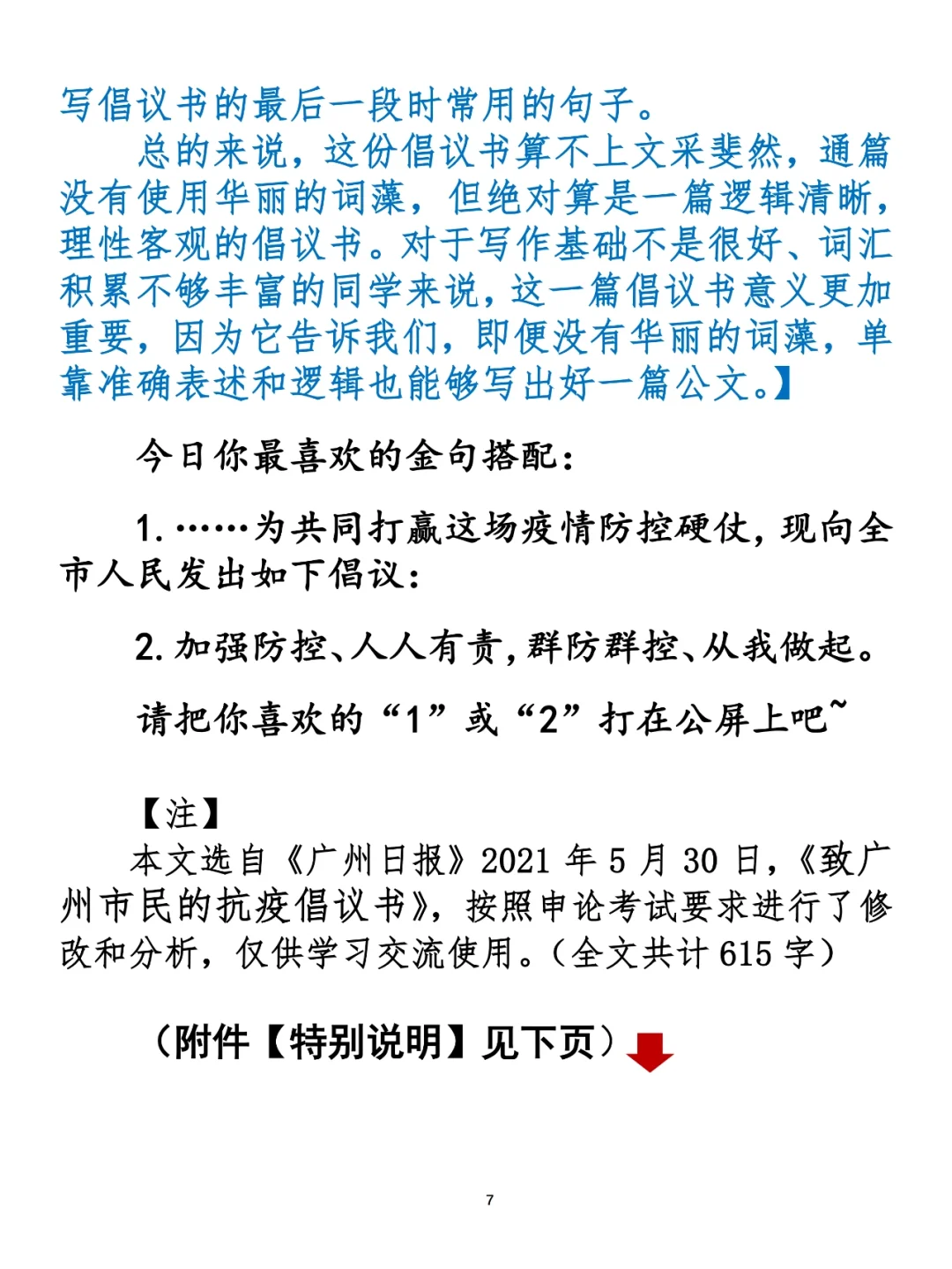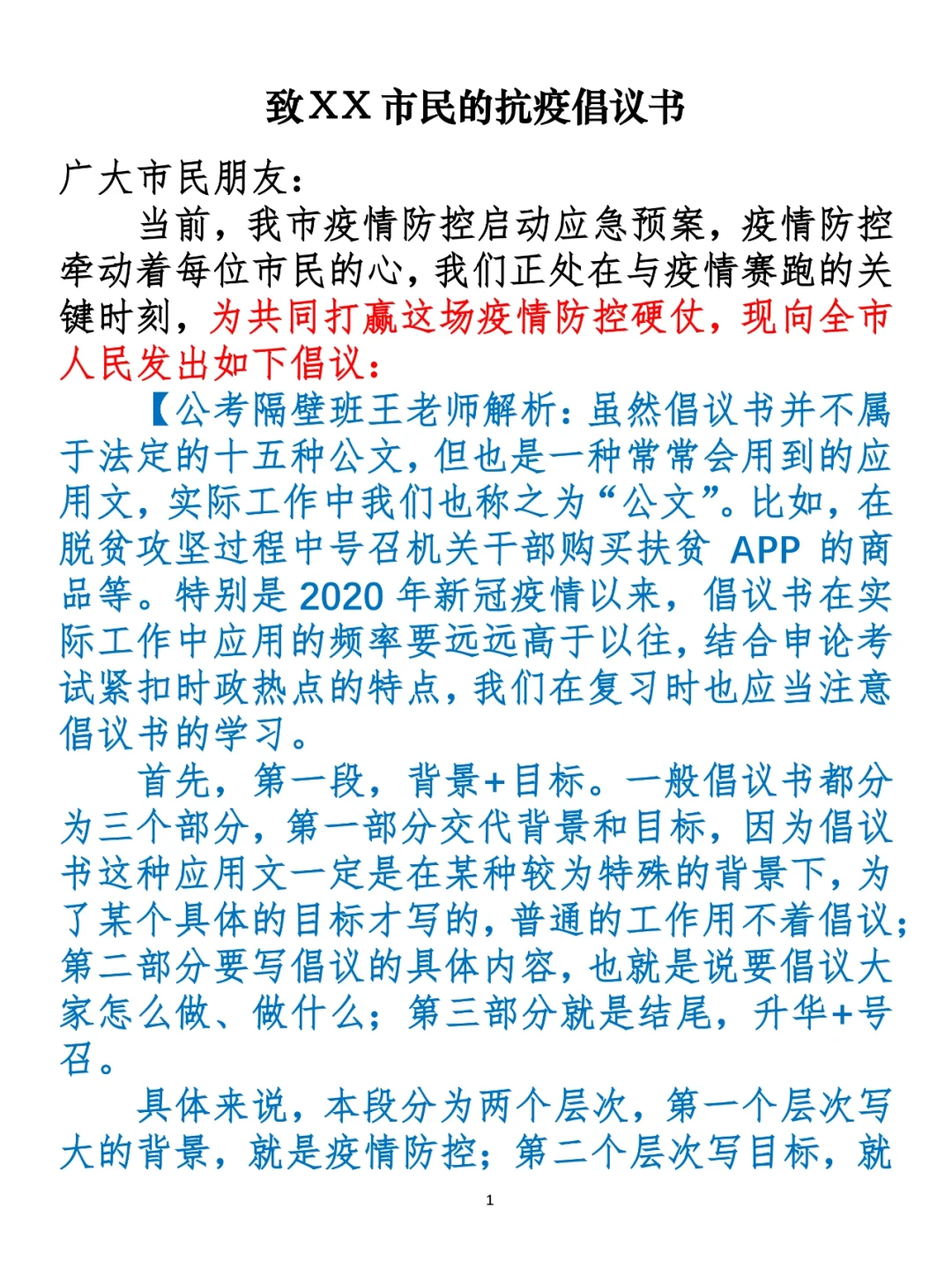 申论出题向来紧扣热点,疫情之下,不会写倡议书可不行! 今天,我们就用一篇申论范文搞定倡议书。 ⭐️ ⭐️ ⭐️ ⭐️ ⭐️ 这里是公考隔壁班王老师独创的“每天半小时 申论80分”抄写团,欢迎加入我们!