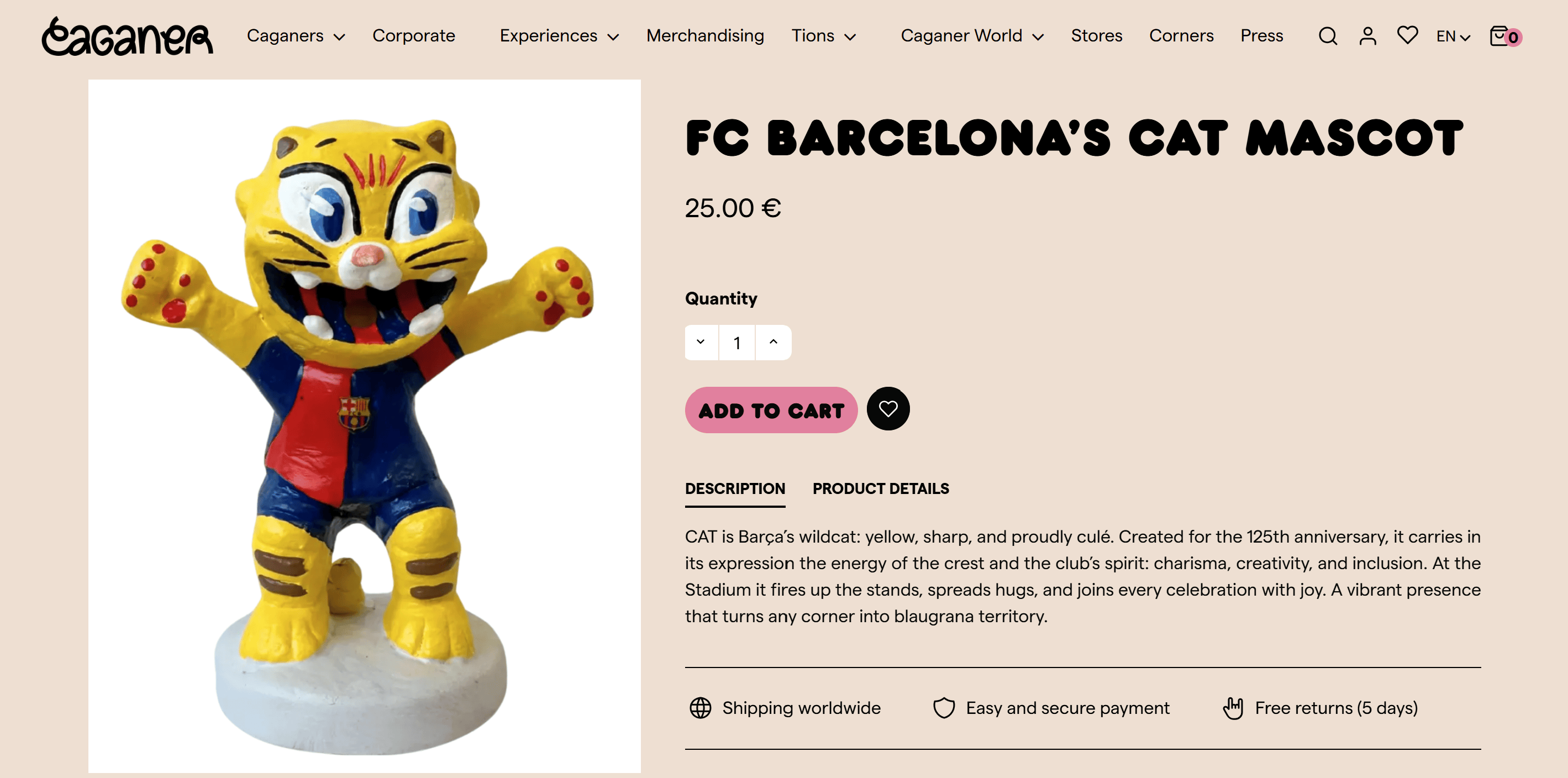 虎扑12月18日讯据《世界体育报》报道,巴塞罗那俱乐部官方吉祥物CAT不仅在球场内人气颇高,在场外同样“卖爆”——其便便人偶版本已经成为自11月初圣诞季开启以来最畅销的单品。