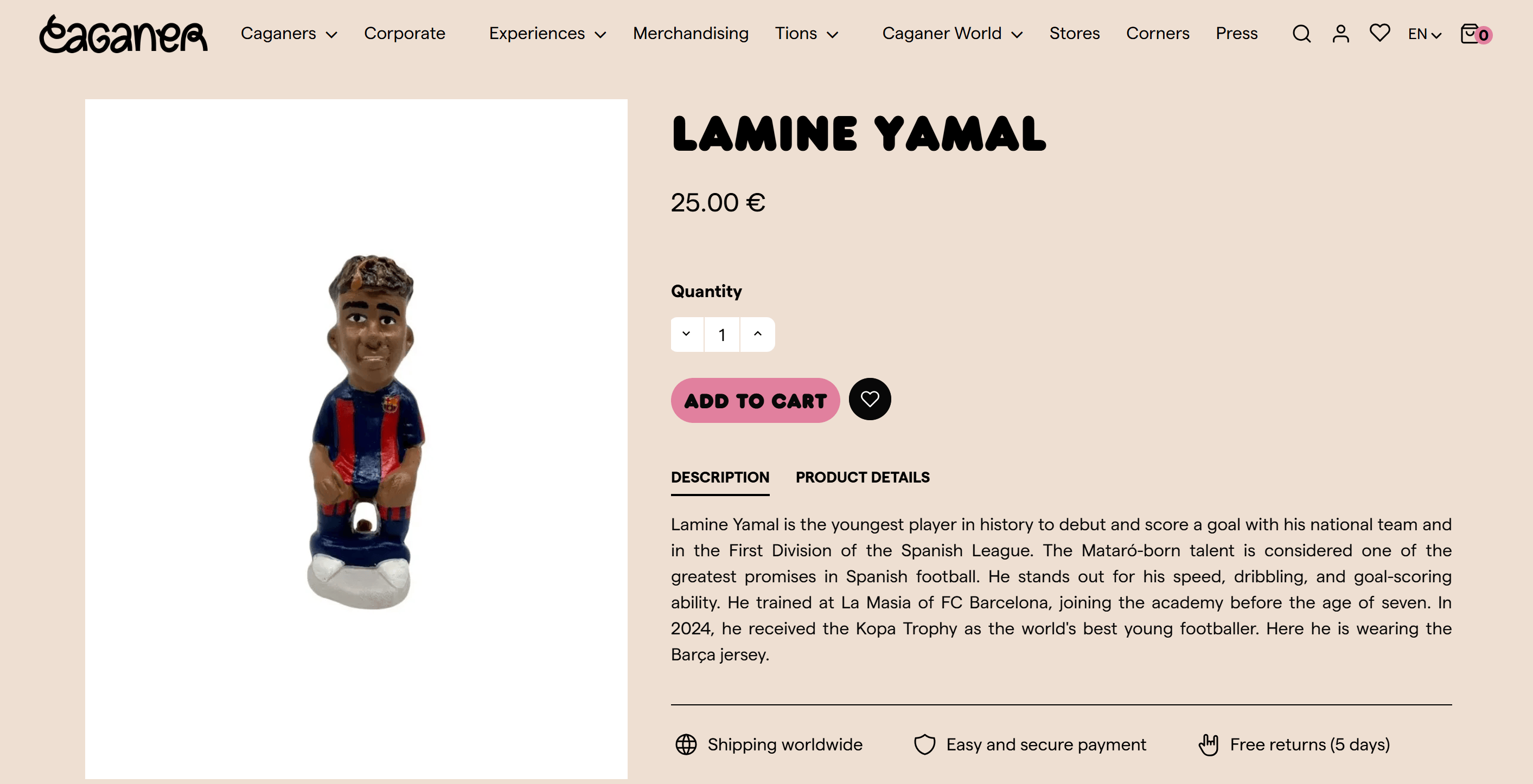 随着本赛季多款新品上线,包括11月发布的最新系列,Caganer.com目前的产品目录已达到750款,创下历史新高。若不计入最传统的牧羊人造型便便人偶,平台历史销量最高的依然是特朗普,其后则是手捧金球奖的梅西。