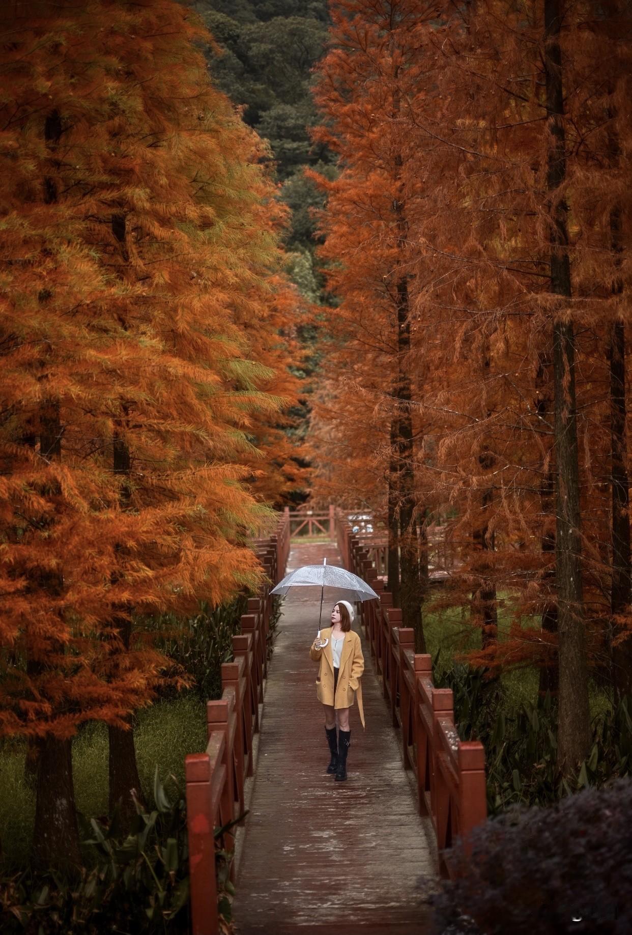 每天美丽照片分享秋日漫步,撑伞漫步在枫叶林中,感受大自然的宁静与美丽。