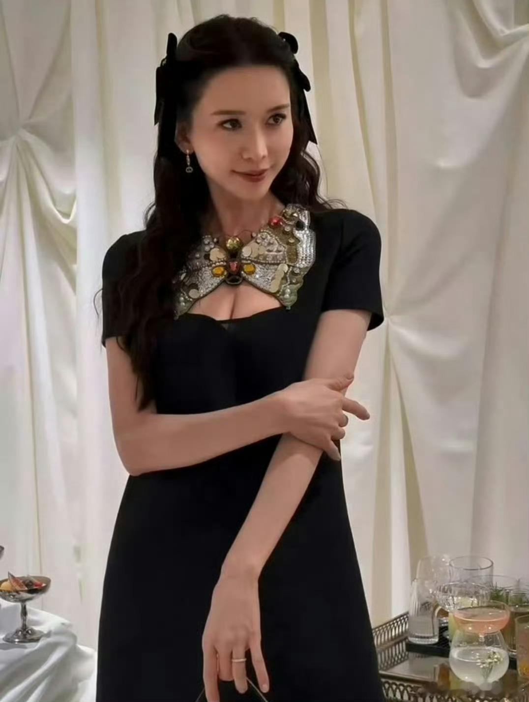 51岁林志玲在上海亮相,无名指戴着婚戒,脸上有肉很年轻,一副老娘很美的表情,但袜