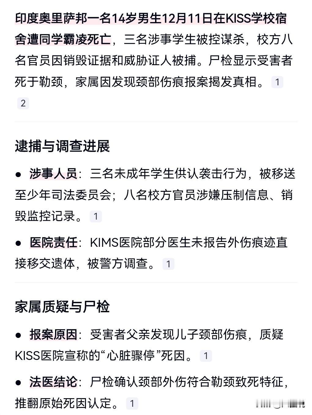 实在是太丧心病狂了,几个未成年人竟然如此这么残忍。 这种可怕的暴力行为,为什么会发生在未成年人身上,这真的值得深思。校园霸凌真的是太可怕。 近日,印14岁男生遭霸凌在宿舍死亡。 遭到三个未成年人勒脖子死亡。 没想到学校的8名官员竟然想掩盖这个罪行,这真的是不配做教育工作。 这八人也被捕了,三个未成年人也被捕了。 必须严惩。
