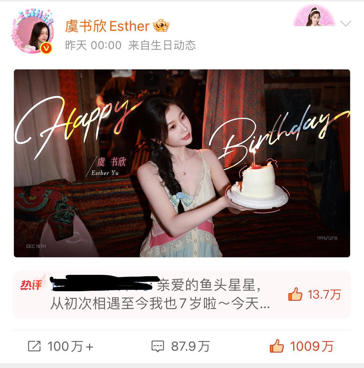 虞书欣生日博很轻松就破千万点赞了,一天时间破的。对比去年有永夜星河加持今年粉丝变