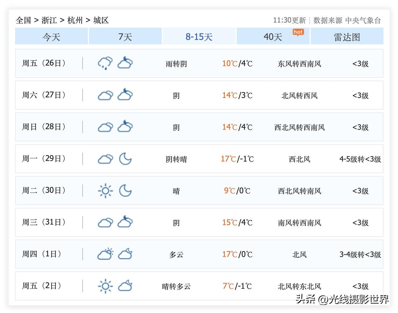 坐稳扶好,浙江省杭州市,即将断崖式大降温!12月19日,杭州最高气温直冲21度,但是,12月21日,冷空气 南下,杭州降雨降温,最高气温暴跌至10度,腰斩啊!这一轮过山车天气,对于杭州来说,意味着秋天秋色红枫、法国梧桐的彻底终结! 12月21日以后……杭州市的红枫、法国梧桐,就是尾巴也谈不上了! 不过,冬天的杭州,还是适合看日出日落的……苏堤的日出,断桥的日出,在冬天都是非常美丽的……涌金门的日落,集贤亭的日落……冬天是非常火爆的! 好吧,杭州的腊梅花已经在酝酿中啦! 1月1日,杭州气温可能是7度到-1度……这样的气温,才能盼来腊梅花的盛开! 法喜寺的腊梅花,钱王祠的腊梅花……大家已经迫不及待了吧?! 就让真正的冬天,早日到来吧!