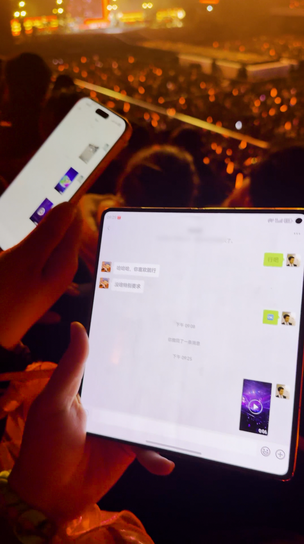 演唱会大型人类互助现场谁懂演唱会的痛!本来非常嗨的一件事,结果人挤人看偶像,本想给没抢到票的朋友发现场视频,信号直接卡成 PPT,这事搁谁身上能不急?王力宏成都30周年演唱会现场人山人海,会场信号真的一言难尽,各种转圈让人脑壳痛。幸运的是,原来真的有 “信号侠”的存在, 这位90后小姐姐,大方地掏出华为X7开热点!不管是苹果 17、16 还是 15,周围连上去的iPhone,都能秒发高清片段了,瞬间缓解网络焦虑。都知道华为是做通讯起家的,信号强悍且稳定,在手机上也一直传承下来。手机如果没有信号,跟板砖有什么区别?这位持有华为X7的小姐姐,不仅帮大家完成了 “云分享演唱会” 的心愿,更印证了追星神器的称号,不得不说,追星看演唱会,手机信号稳 + 拍照清晰,真的是刚需,华为X7表示也都擅长,那就继续约下一次场演唱会,再当一次“信号侠”吧~女生演唱会分享热点成信号侠