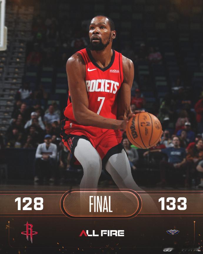 杜兰特半场百分百命中率 燃炸了!火箭客场对战鹈鹕,37 岁阿杜直接 7 投 7 中!三分4中4得到18分4篮板2盖帽!虽说火箭最终加时 128-133 惜败鹈鹕有点可惜,但这场球看得是真过瘾!阿杜这状态,谁看了不说一句牛!杰伦约翰逊生涯新高43分
