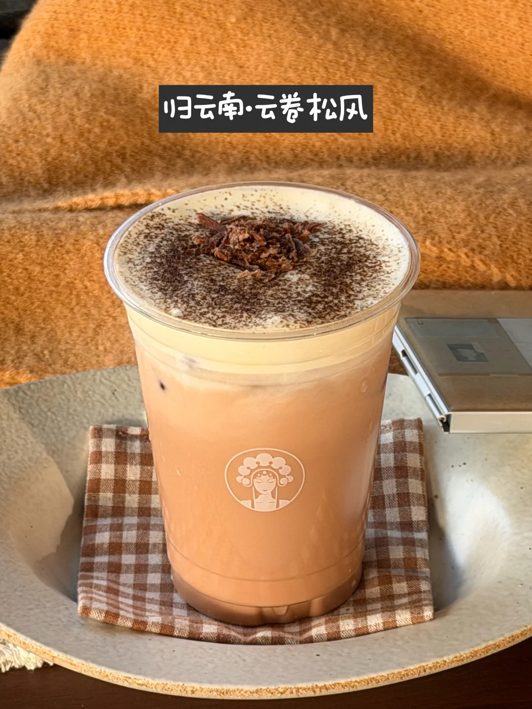 这杯真的好山野!一口就爱上!云南熟普+山野黑松露+牛肉碎+干酪云顶,记得大口喝顶部奶盖,咸绵甘醇,四重风味慢慢绽放,到店后店员还会现场挤制奶盖、撒上牛肉碎,手作仪式感满满!