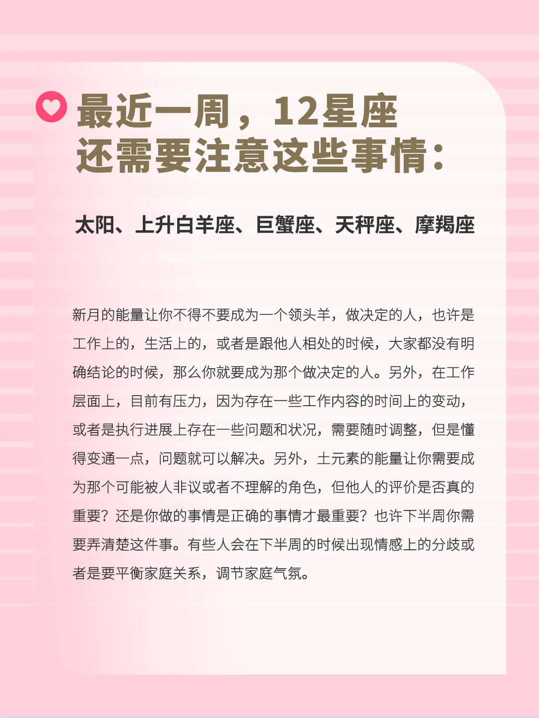 本周剩余几天至下周二期间,12星座还需要注意这些事情:(请阅读图片)