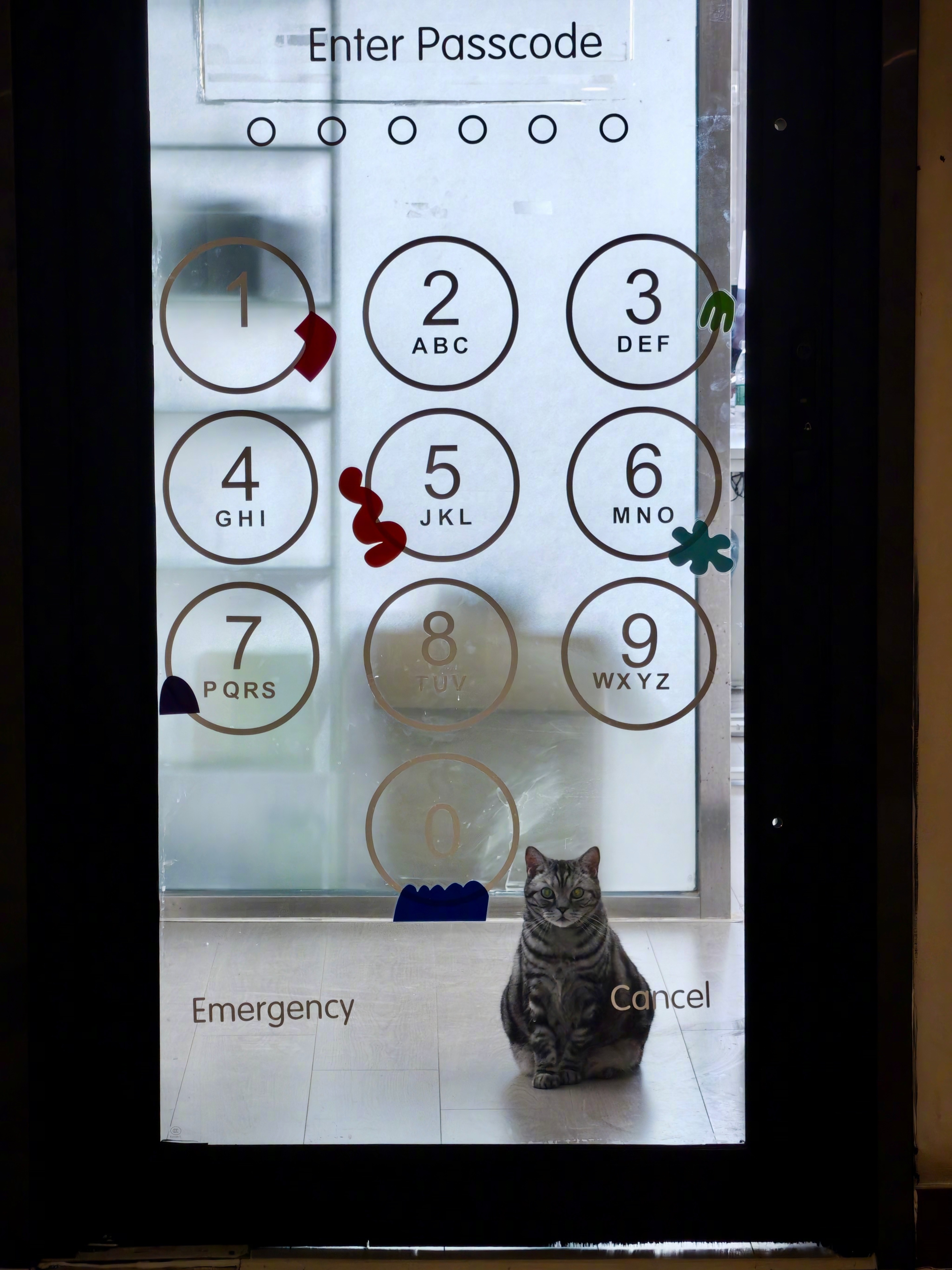 呜呜🥹太可爱!输入密码可以解锁猫猫!我家里其实有 6 只猫,但是它和别的猫一直处不好可能也是因为猫多、猫本身领地意识也重,Tiger先前一直仗着体型大,肥肥嘟,欺负过别的猫。结果有次我们出差回来,发现它突然变得很爱躲起来,好一阵子叫它都不怎么爱出来我们猜!它可能“打输了”,信心被击垮了。再后来就一直不理别的猫,甚至还会被反过来欺负…后来我就把它带工作室来了!它在这儿每天巡逻、躺在大家鼠标垫上、椅子上、有时候开会的时候还会上桌走一圈,大家都很让着它。它可能喜欢明快的颜色,我们有个伙伴,椅子和鼠标垫都是橙色的,有时候把位置都给它了,去旁边办公,但也不知道是不是因为大家都让着它 感觉状态好不少直到最近我们刚搬新工作室,以前的门是实体的,这次换了透明玻璃,发现它可能真的会想我们呀