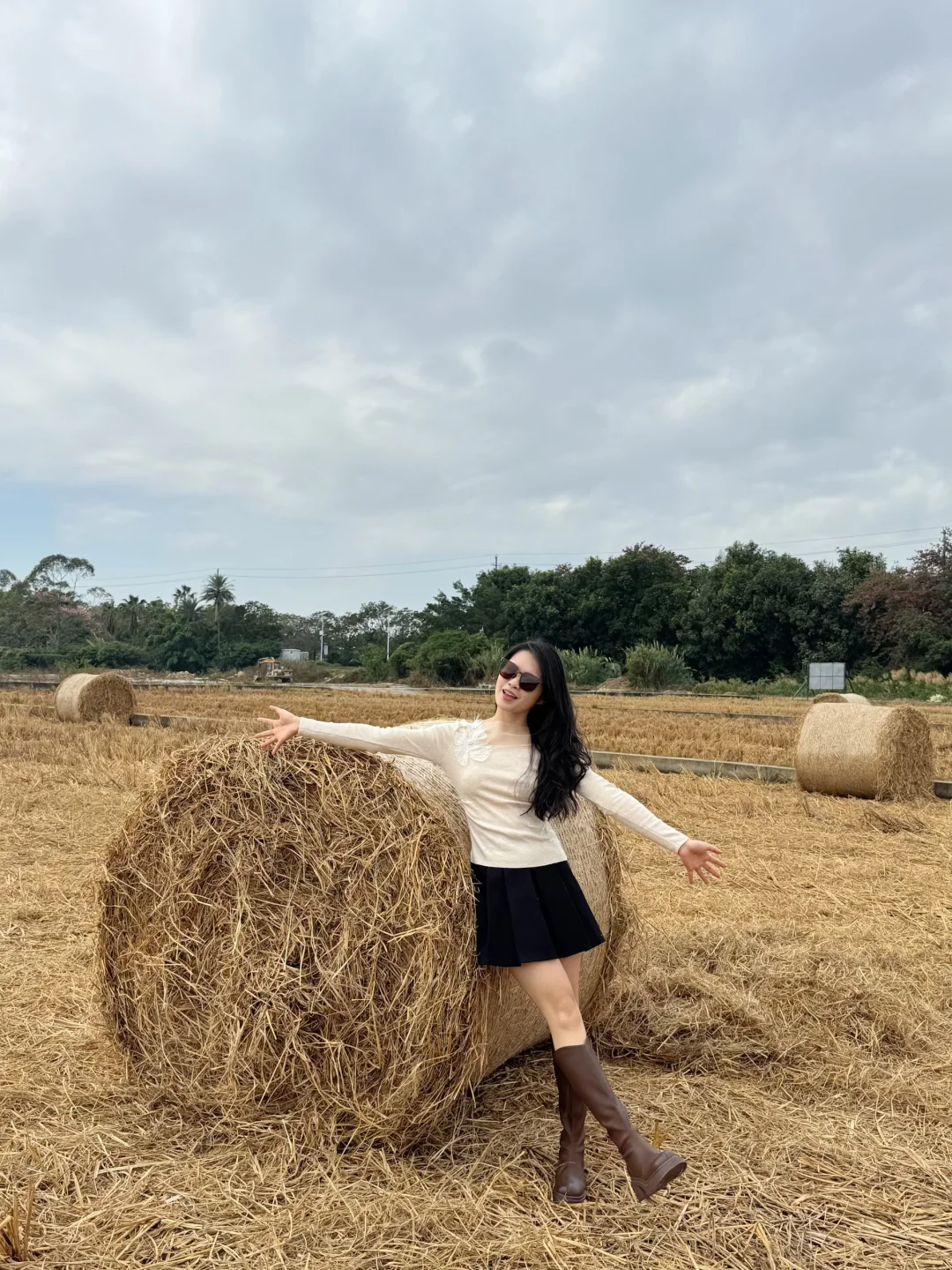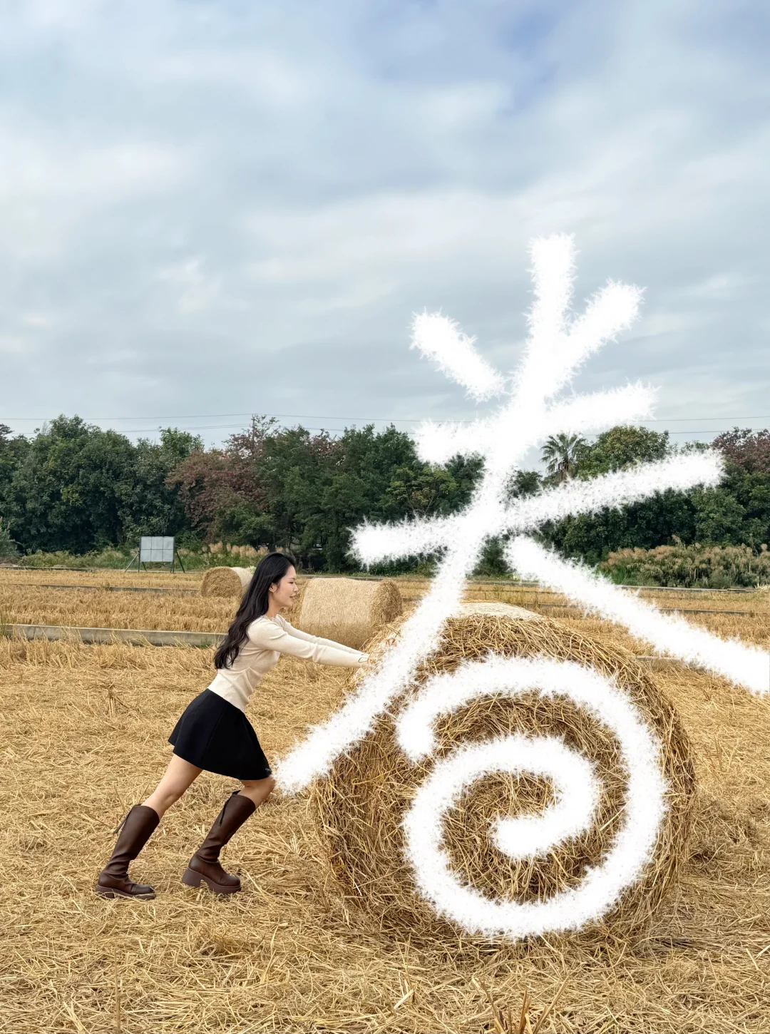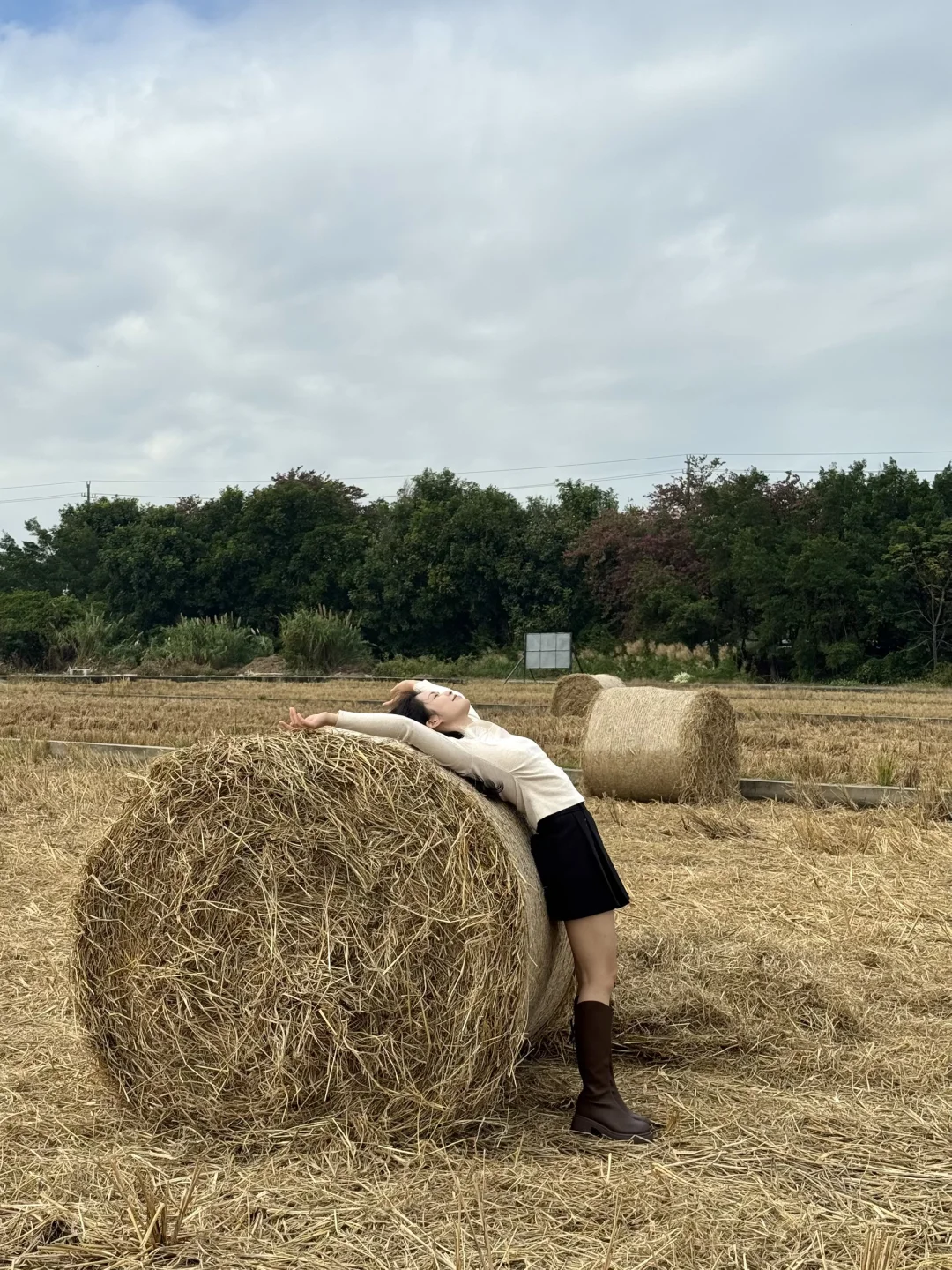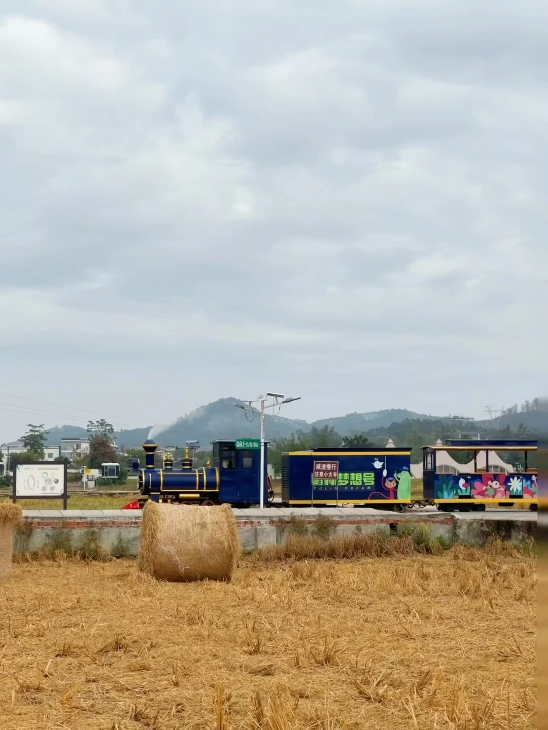 不卷啦🍂来五彩田园躺平... . 🌈玉林也有草垛啦! 拍照打卡!无广纯分享! 会放好几个月,一大片空地,好多个“瑞士卷” 小火车经过的时候,有玉林“小喜洲”那味~ . 📍五彩田园: 🚗定位:田园咖啡厅(图14) 🅿️停车:两轮电动车,小车30分钟不用💰 1小时5r,2~24小时10r 🎫无门票 🎀穿黄色系衣服出片! .