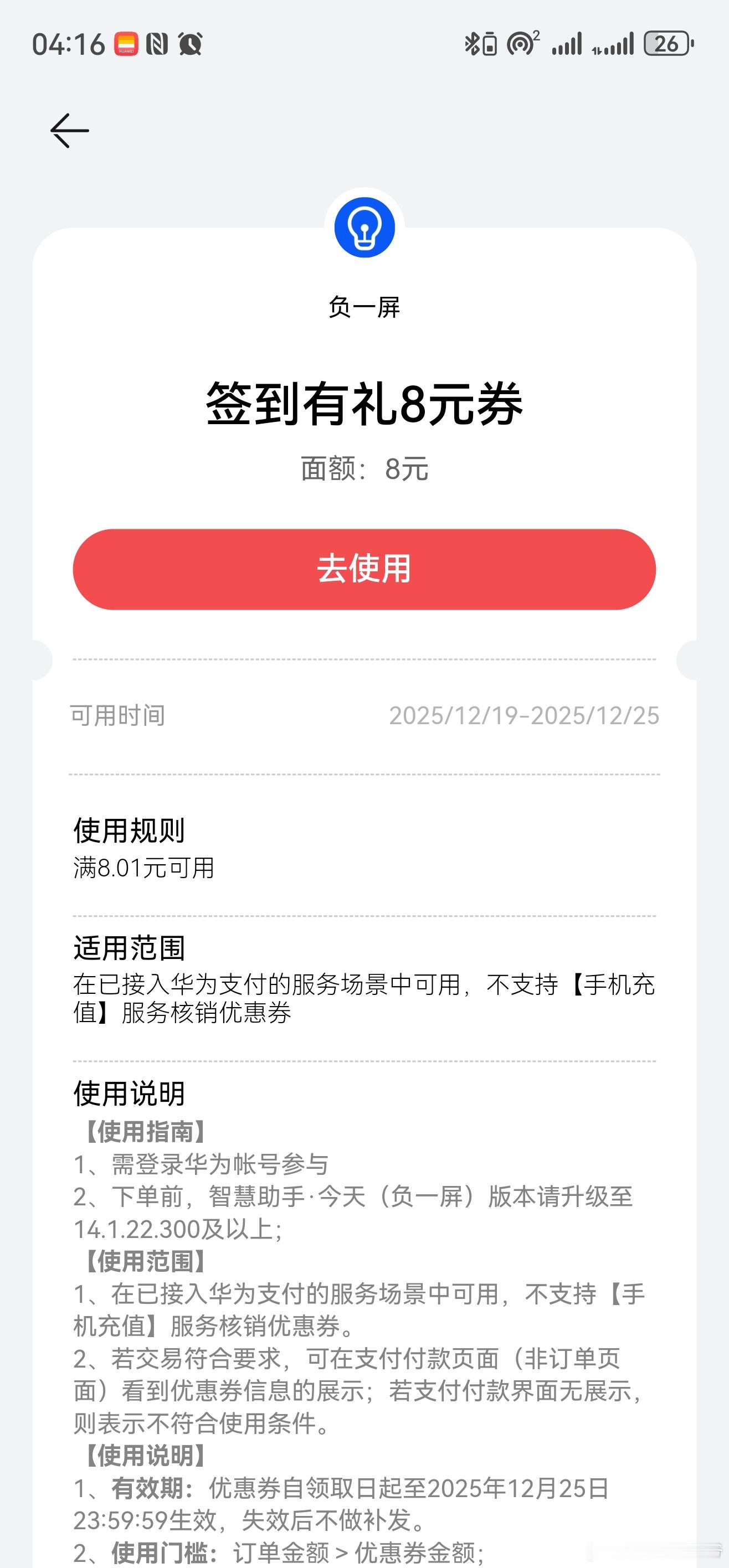 华为4.3及以下,也可以领取天天签到领好礼品了!负一屏,天天签到领好礼!今天开始
